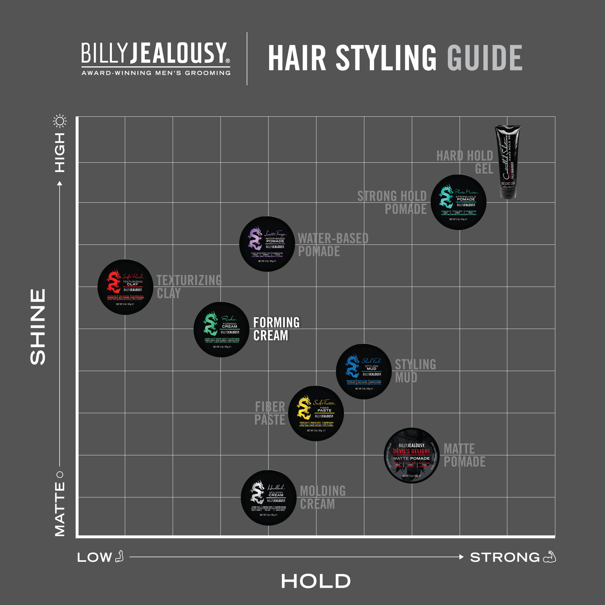 For a touchable and versatile hold with a medium shine, Ruckus Forming Cream is the perfect solution. This styling puck makes it easy to create structured or messy looks for medium to long hair. The flexible hold can be reworked throughout the day, and won’t flake out. Formulated to nourish hair as well as style, and water-soluble to wash out without pulling hair.