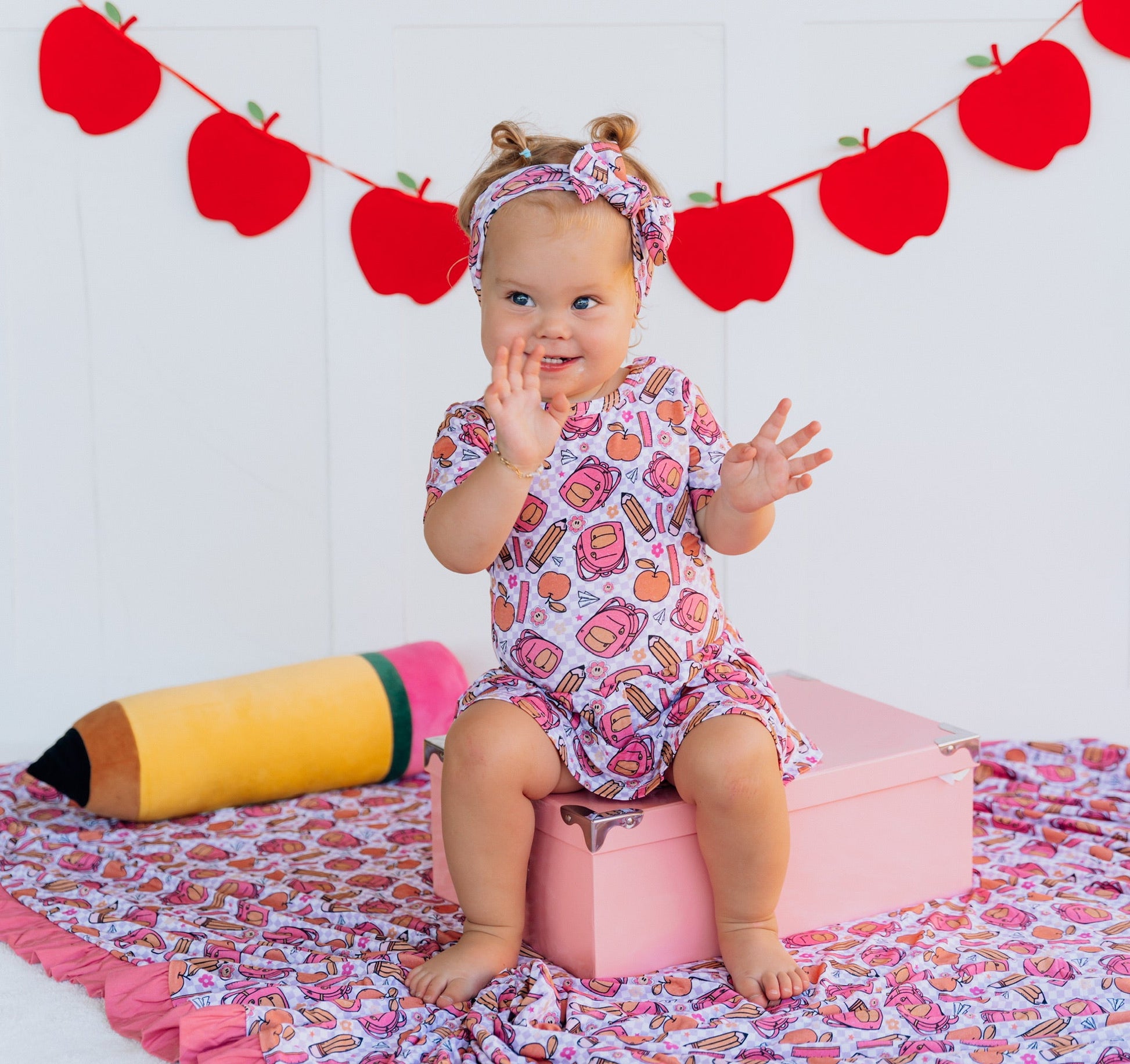 Be the ruler of the school in this creative, back-to-school-themed bodysuit dress! With its playful ruffle detail, you'll bring a little bit of the playground to the classroom! Get ready to break the rules and have a fun time!