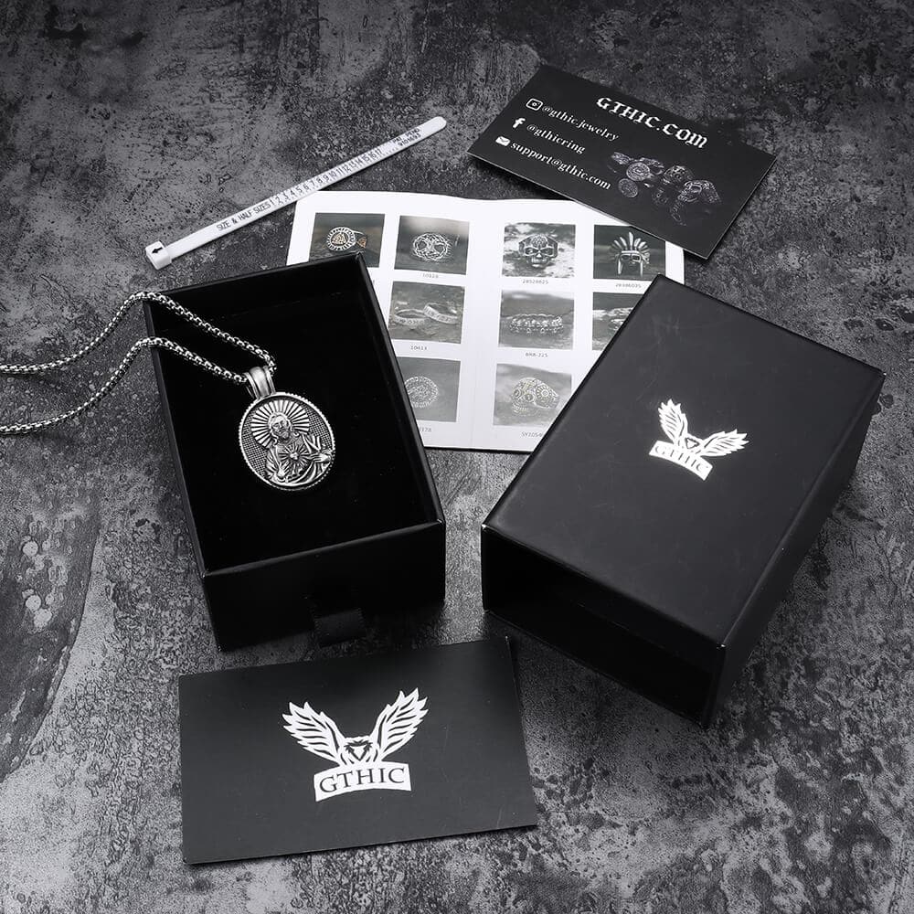 The devotion to the Sacred Heart is one of the most widely practiced and well-known Catholic devotions, wherein the heart of Jesus is viewed as a symbol of "God's boundless and passionate love for mankind". This pendant uses tin. Tin is the fourth rare metal after platinum, gold, and silver. It is harmless to the human body and is called green metal.