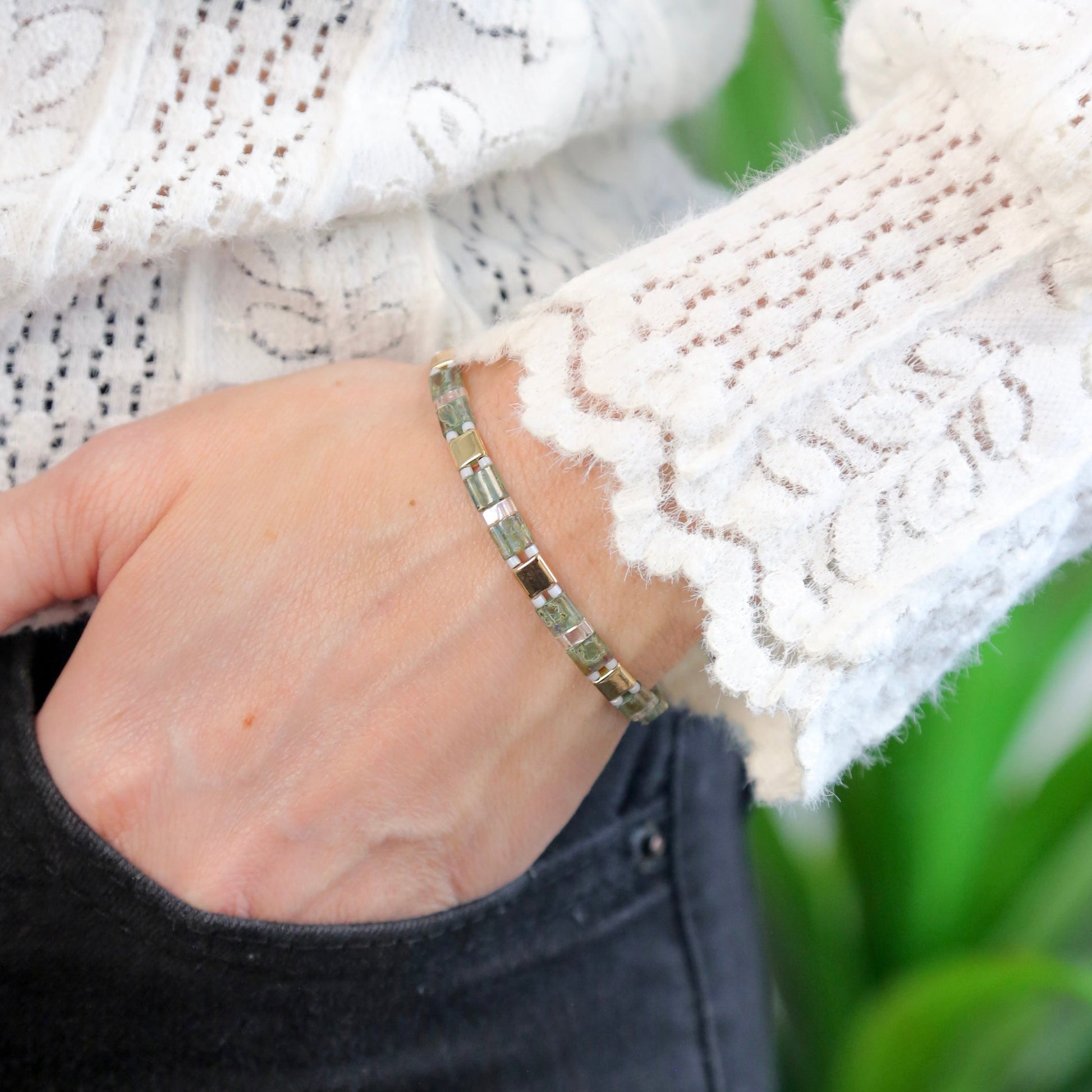 Tila Bracelets by Mack & Rex are NOT your typical beaded bracelets! We proudly back up our bracelets with a quality guarantee (yes, on stretchy bracelets!) and know that you will love them! They are made with an expensive crystal cord elastic, as well as glass tile beads from the top manufacture in Japan. In addition to being beautiful, our stretchy bead bracelets are: