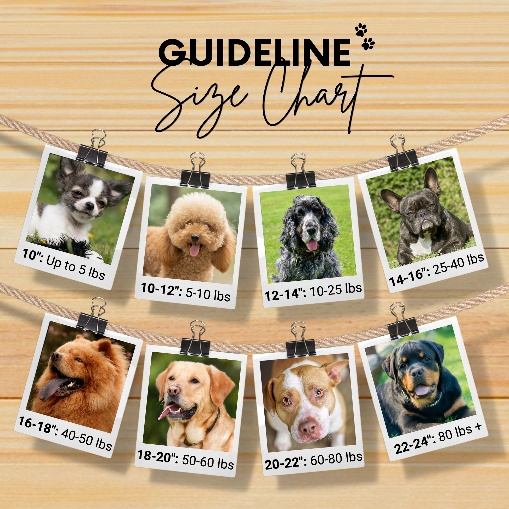 A 8-10" is best for necks 8 to 9.5", a 10-12" is best for necks 10 to 11.5" etc. Size up if your dog's neck falls on the highest number of the range ex: if your dog is 14", get the 14-16" instead of the 12-14"!