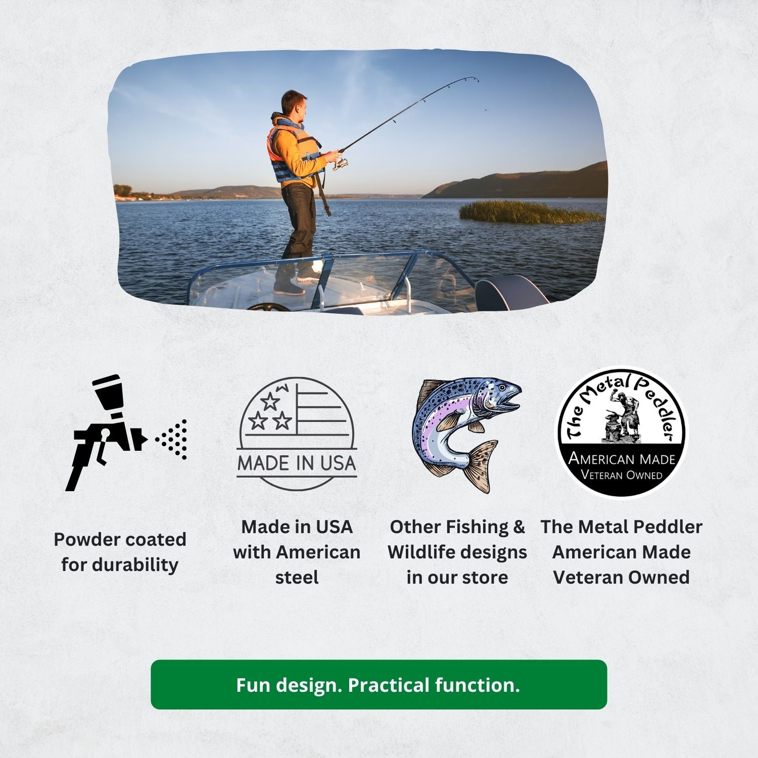 Check out the awesome Salmon Fish Welcome Sign! It's made right here in the USA, crafted with care from durable steel and powder coated for rust resistance. This sign features a design of a salmon fish, adding a touch of natural charm to your home or hangout spot.
