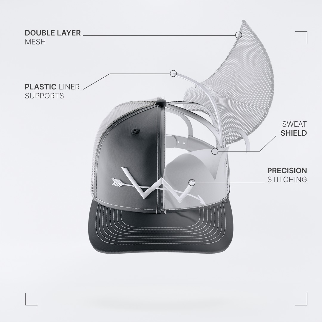 Our signature double-layer washed mesh is incredibly soft, breathable, and built to last. The thick cloth front holds its shape through years of use. Inside, you’ll find our signature built-in Sweat Shield that keeps sweat and stains from showing through.