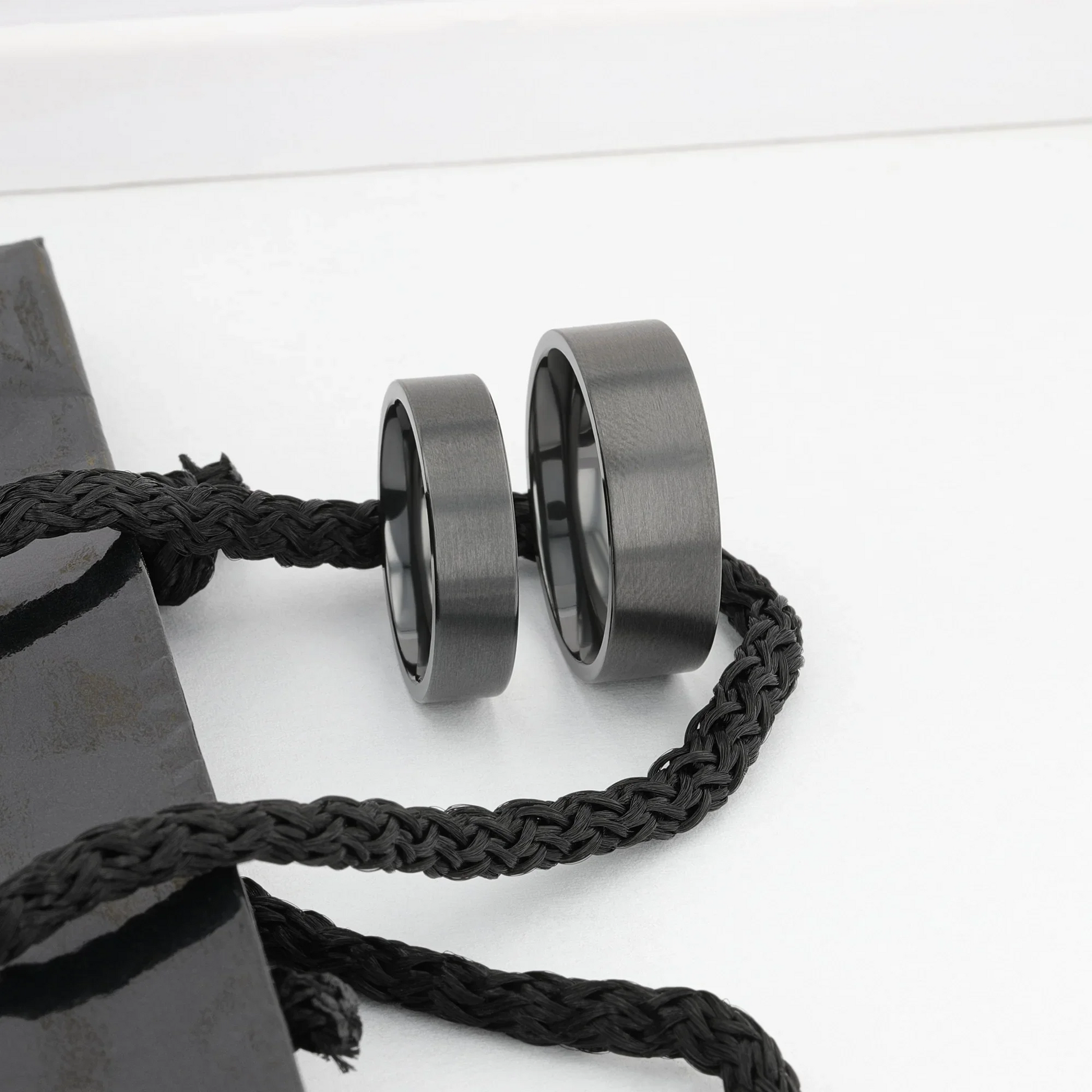 SAN BERNARDINO Brushed Finish Flat Black Titanium Men’s Wedding Band - 6mm & 8mm