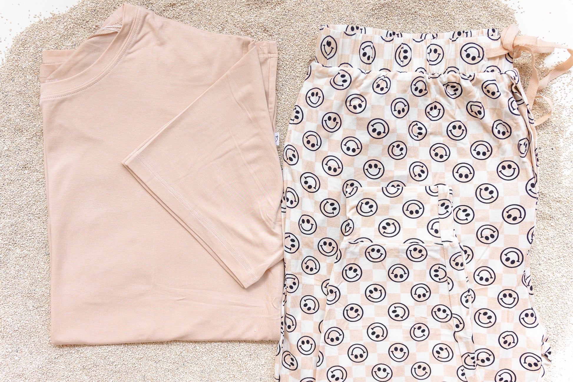 Introducing our Sandy Smiles Checkers Dream Men's Jogger Set! Made from bamboo material, this buttery soft jogger set is perfect for any man looking for comfort and style. With a playful neutral color and smiley face design, this set will bring a touch of fun to your wardrobe.