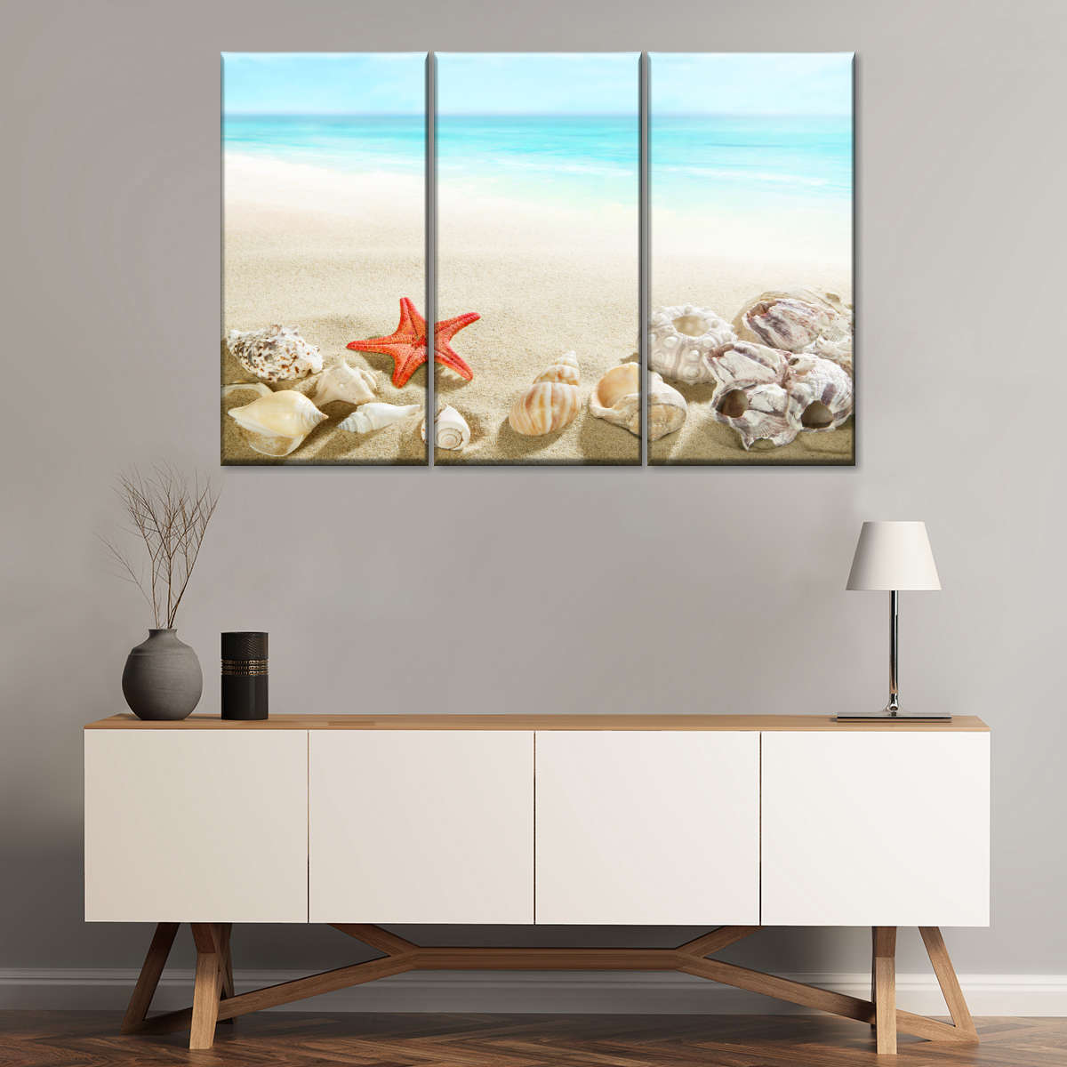 Gifts from the Sea Multi Panel Canvas Wall Art is a great way to unwind and relax no matter what situation you are in. Take the pleasure of blue water and soft sand with this beautiful canvas art print.