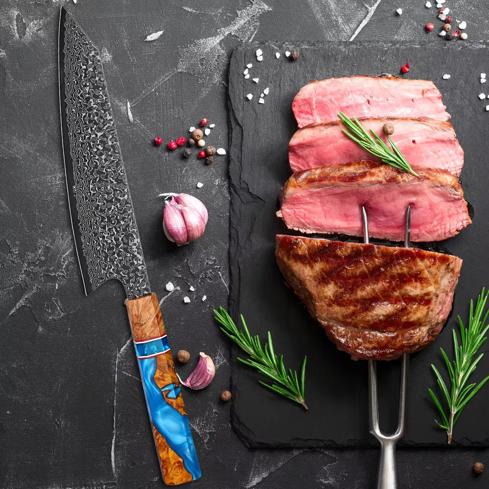 Serene Chef Knife with Exotic Olive Wood Burl & Resin Handle