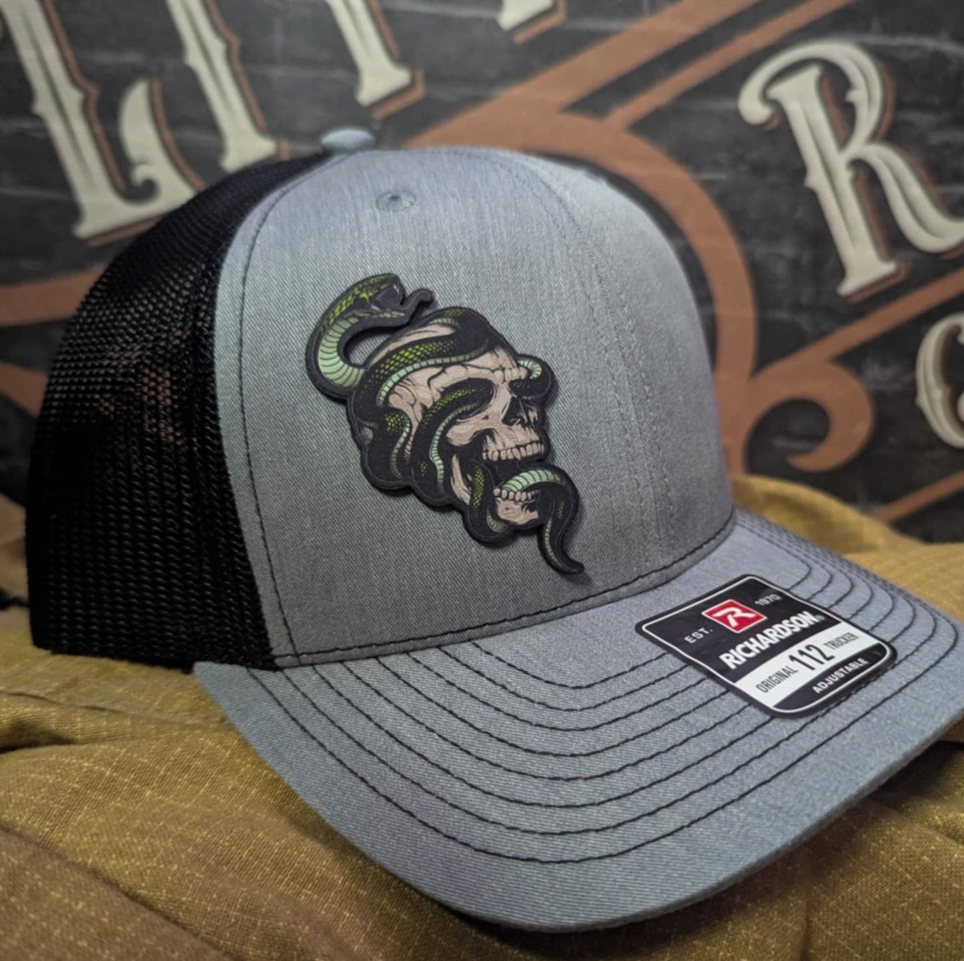 Serpent Skull Leather Patch Hat Snake and Skull Graphic