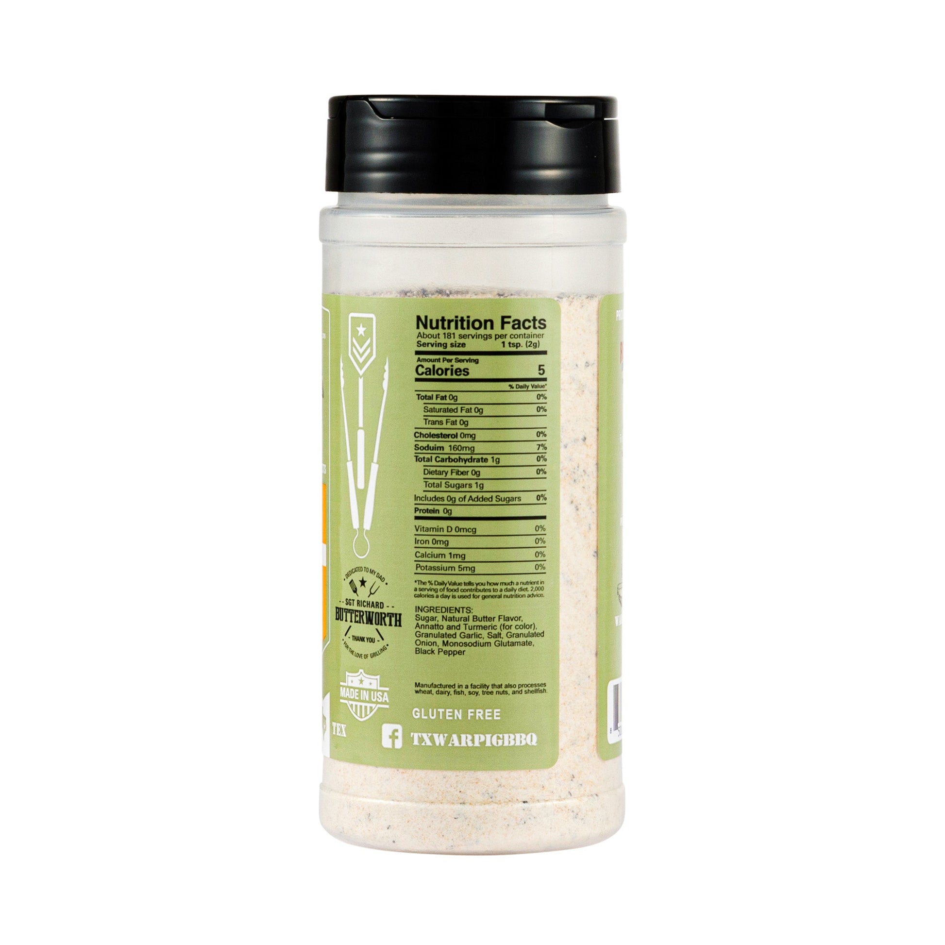 All purpose rub with real butter , salt , pepper , garlic and onion.