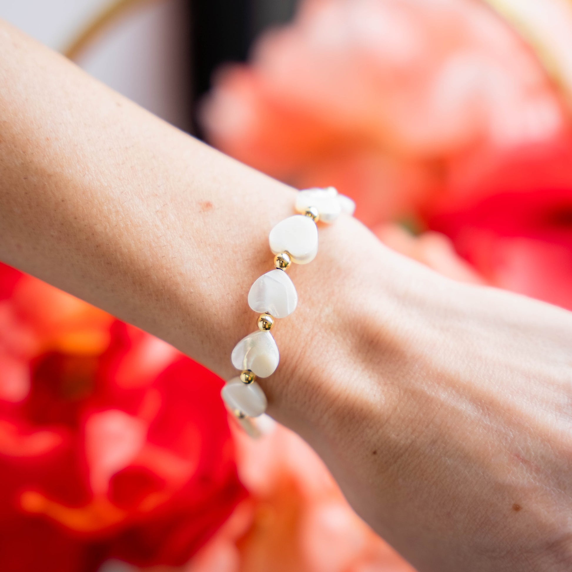 Introducing the Shell Heart, an adjustable accent bracelet with 18k gold-plated beads. This bracelet is not only waterproof, but also adjustable for the perfect fit. The high-quality materials used make it a bracelet you won't ever want to take off.