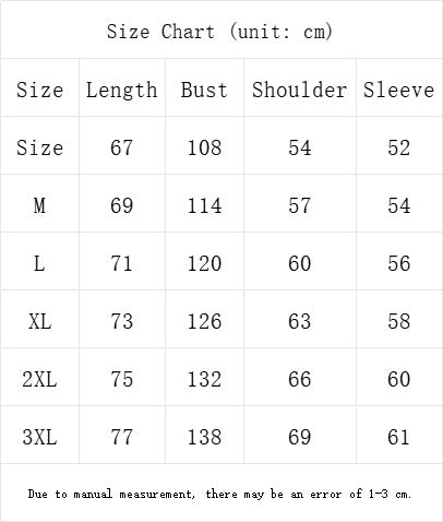 Size chart measurement is for reference only. Manual measurement error is about 1-3 cm.