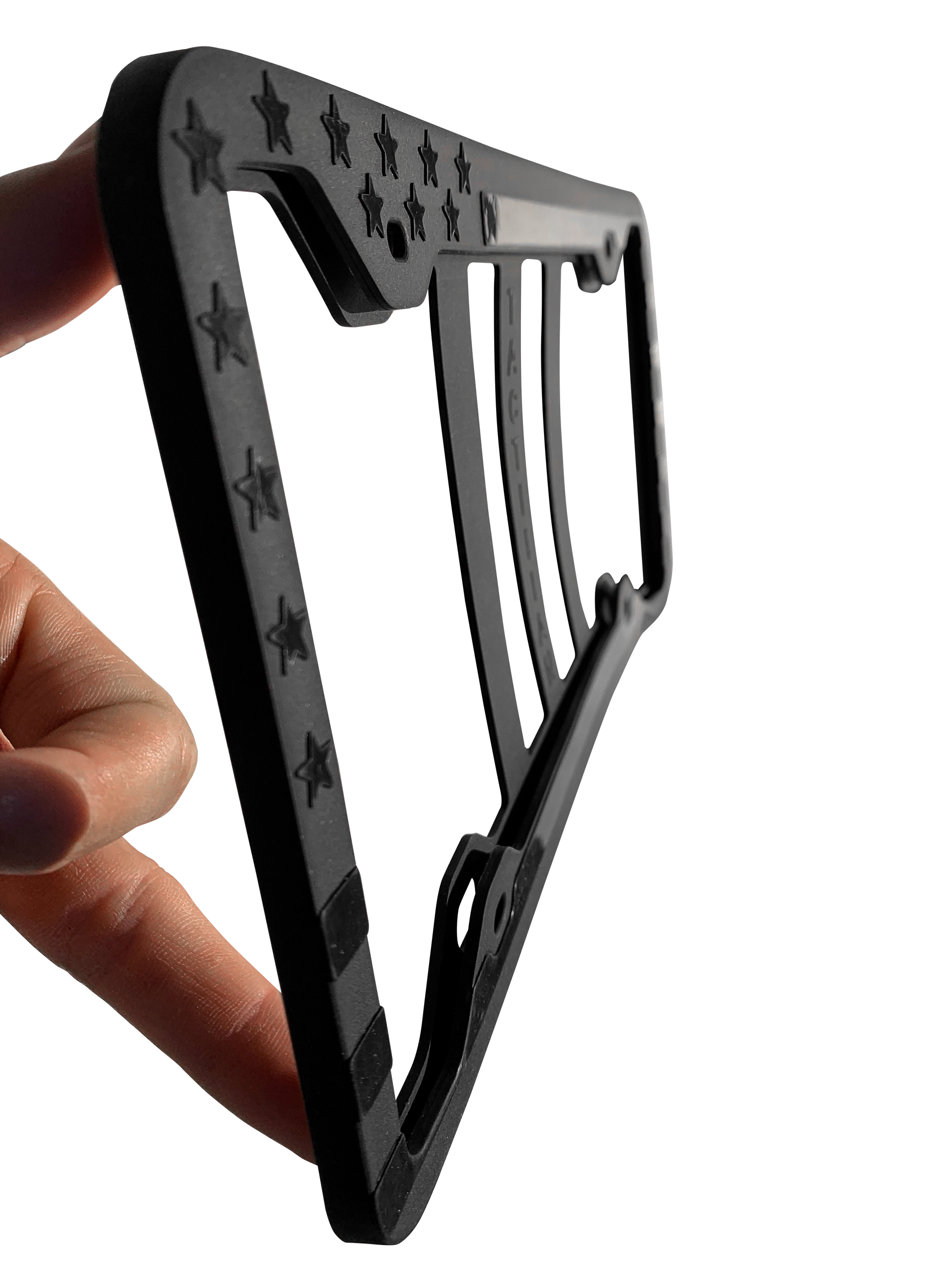 - Unique Patriotic Look: Our product's subdued 3D American Flag design adds a clean edge along the outside of your license plate while adding the perfect amount of patriotism. The Stars and Stripes pop off the frame with a glossy silicone finish while the background maintains the matte black finish.