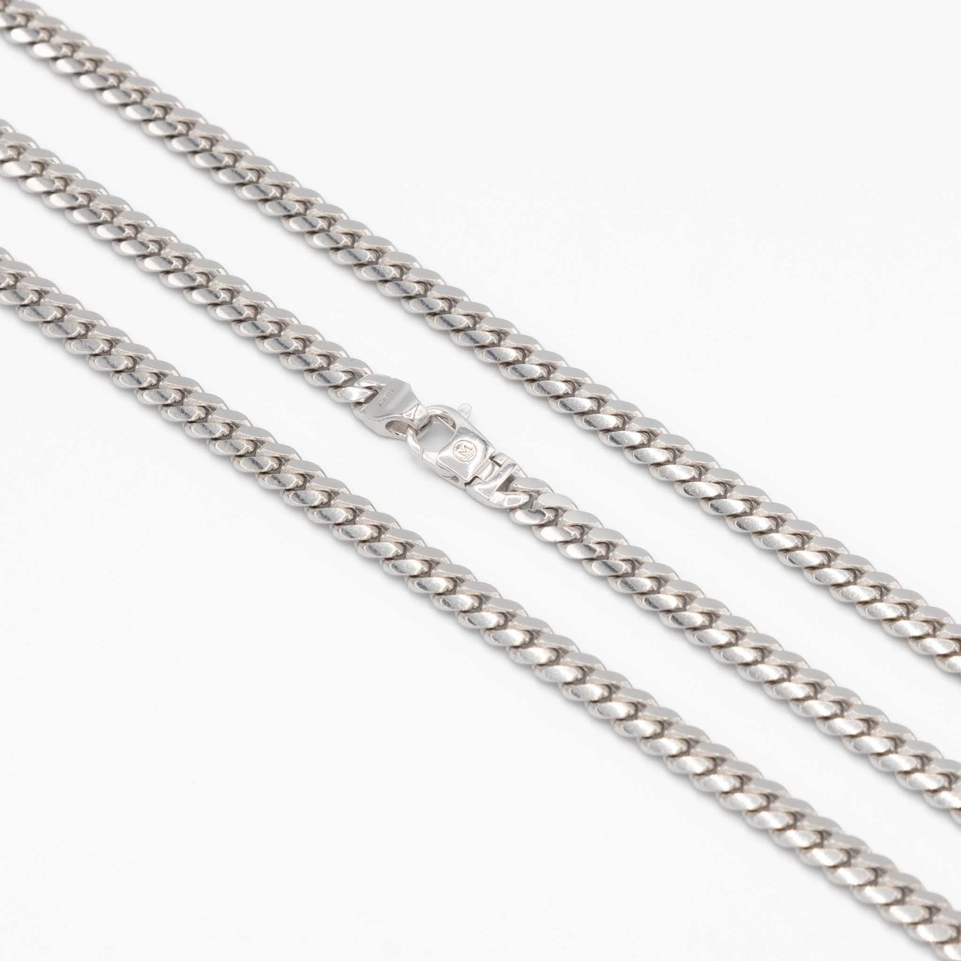 This 5mm Miami Cuban chain brings a sleek, low-profile version of the iconic Cuban look—refined enough for daily wear, bold enough to stand out. Handcrafted in Italy with solid 925 solid silver and a rhodium finish, this chain is made to deliver lasting shine and strength. It features our custom micro-infused large clasp, redesigned for a smoother, easier fit—so it’s always ready when you are. Whether you’re dressing up or keeping it casual, this piece adds just the right amount of edge. Wear it on its own for a subtle flex or layer it with other chains for a look that’s all you.
