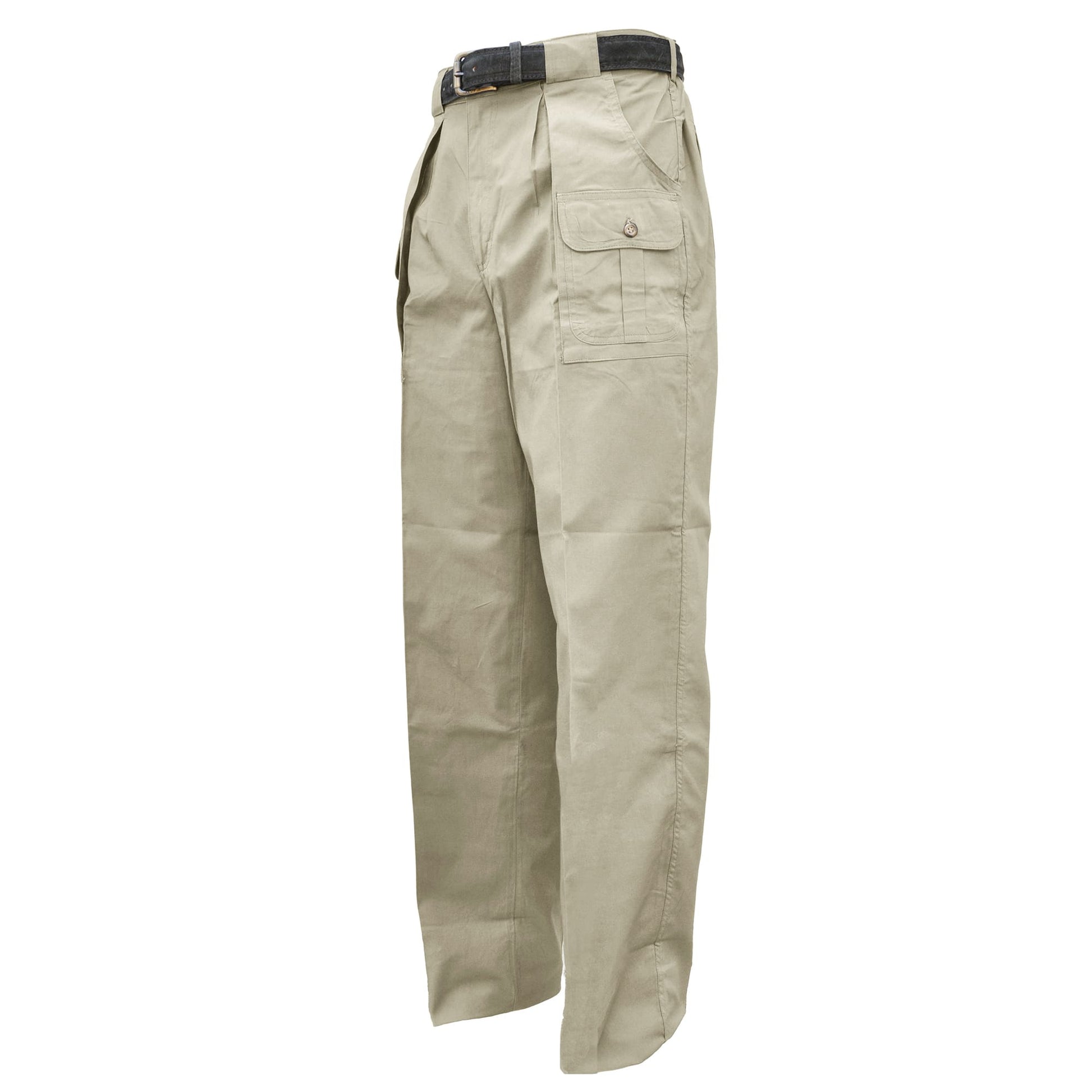 Six-Pocket Congo Pants for Men offer generous storage pockets and a roomy fit for your comfort when traveling to the African continent. Two buttoned flap covered pockets in the front, two in back, and two hip mounted side entry pockets securely hold all your essential hunting gear. Expandable panels and generous sizing allow for flexibility and freedom of movement when tracking game or just exploring in the field. Large belt loops accommodate wide or heavy belts. Made in Africa from pre-washed and pigment dyed 100% lightweight cotton. These Men's Congo Pants with Six Pockets are the logical choice for the intrepid traveler and outdoor enthusiast.