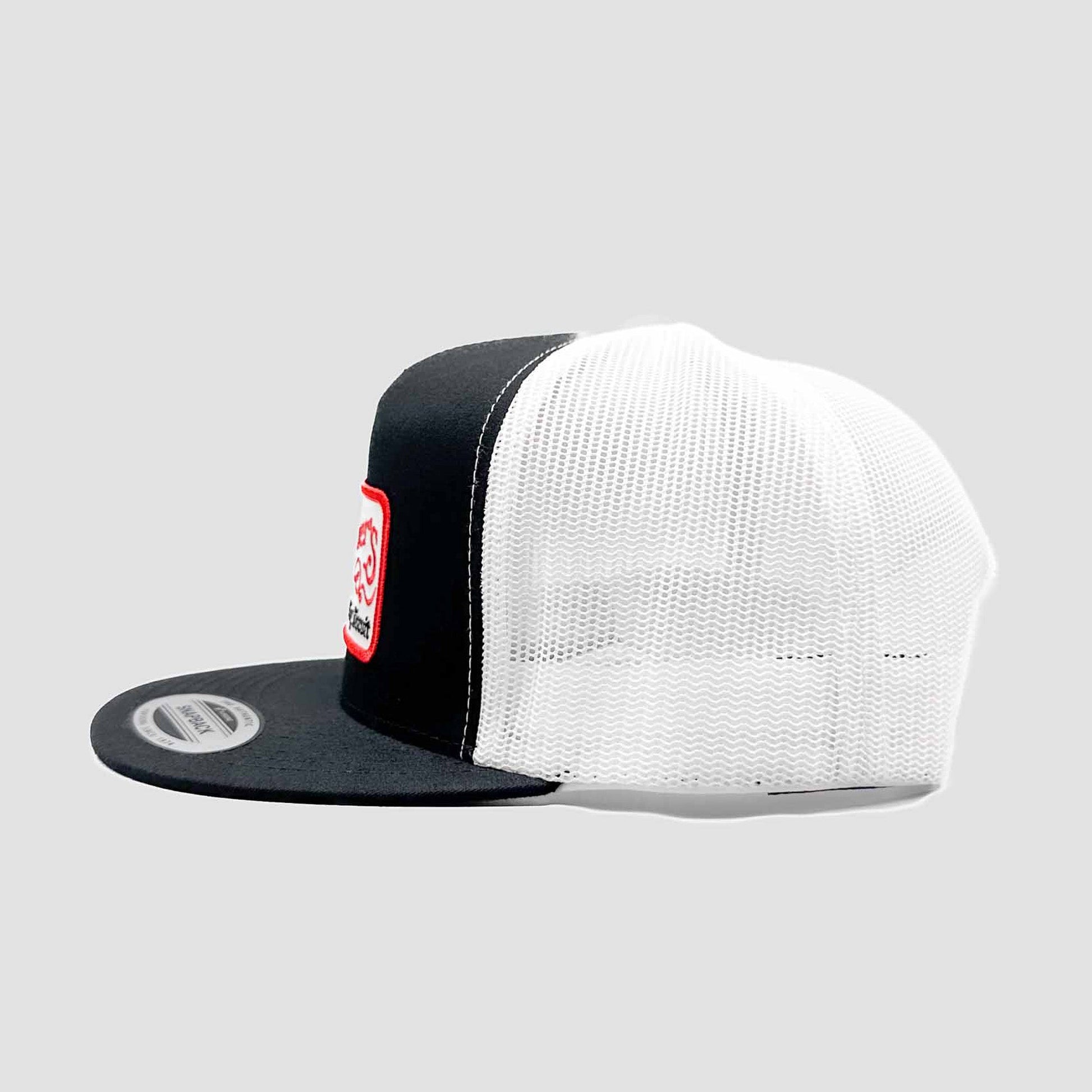 - - Classic black and white mesh trucker cap with premium, matching mesh panels