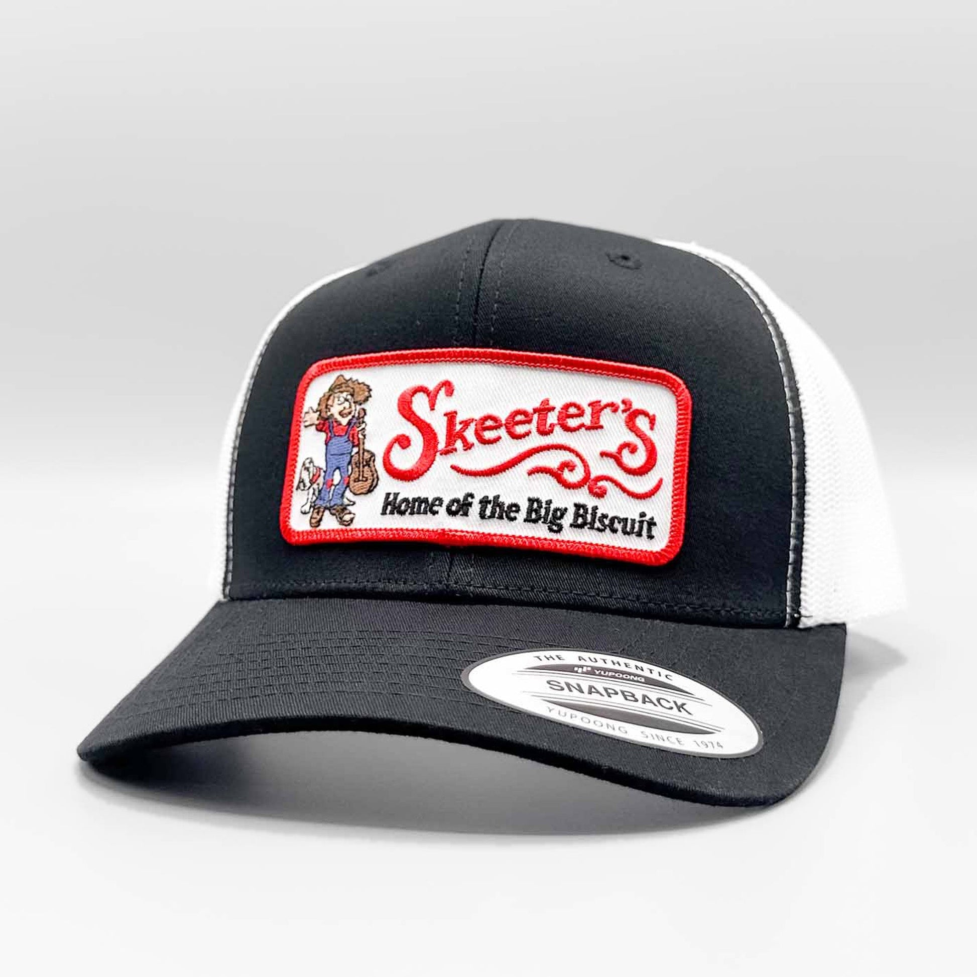 - - Retro Skeeter's Home of the Big Biscuit embroidered patch on front panel