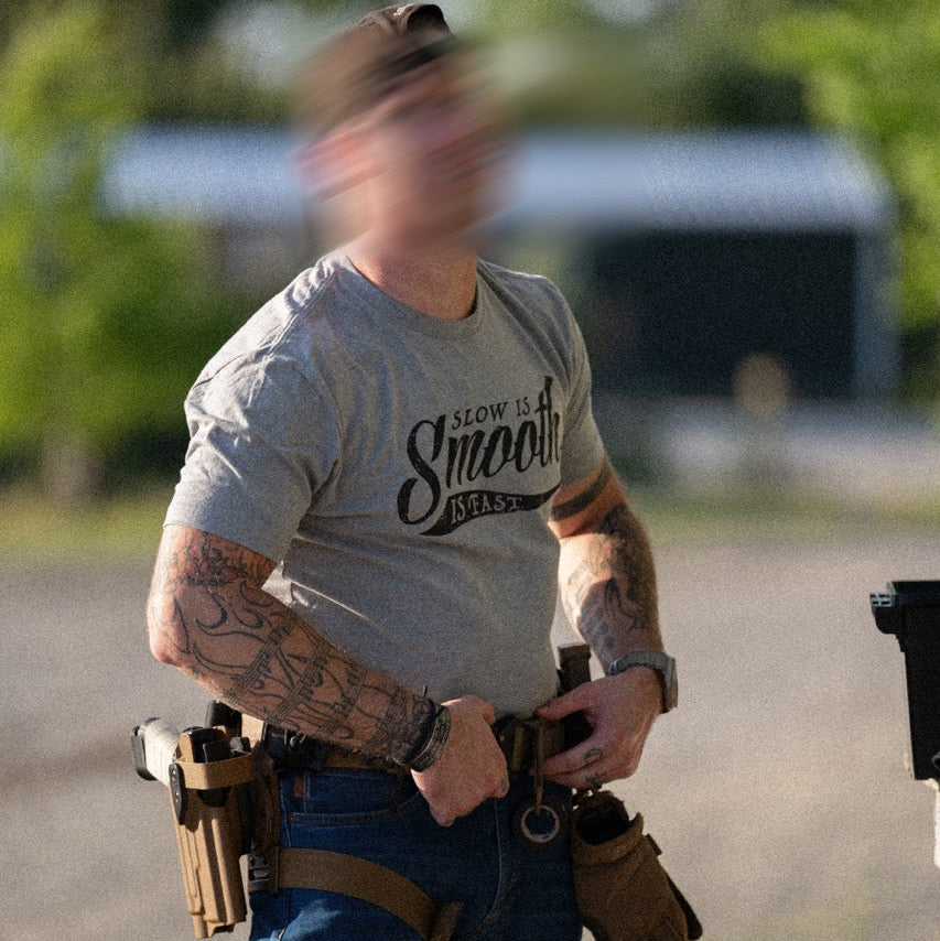 "Slow is smooth, smooth is fast"... Within that context, moving fast can be reckless, causing you to fumble and can potentially be fatal. When you move slowly, carefully and deliberately, you're actually moving as fast as you can without needlessly increasing the risk on your life. Master your training slowing, so when the time comes you move quickly, effortlessly and accurately.