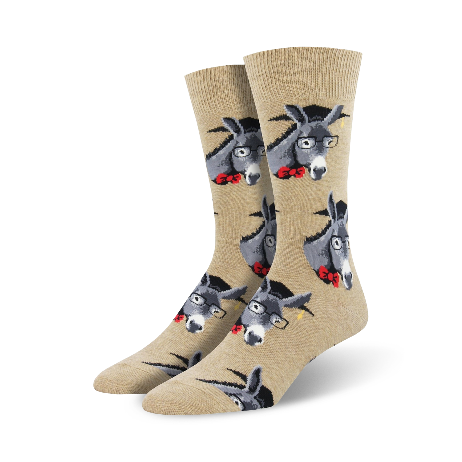 If you're a proud smartass with a love for all things cheeky and playful, then these novelty socks are the perfect addition to your wardrobe. Featuring a pattern of donkeys looking downright intellectual in reading glasses, a red bow tie, and a graduation cap, these socks are a tongue-in-cheek way to show off your sassy side. Whether you're wearing them to a casual outing or to a formal event, these socks are sure to get noticed and make a statement. So go ahead and let your inner smartass shine - these socks are the perfect way to do it. Just be prepared for people to start calling you a "donkey" (in the best way possible, of course).