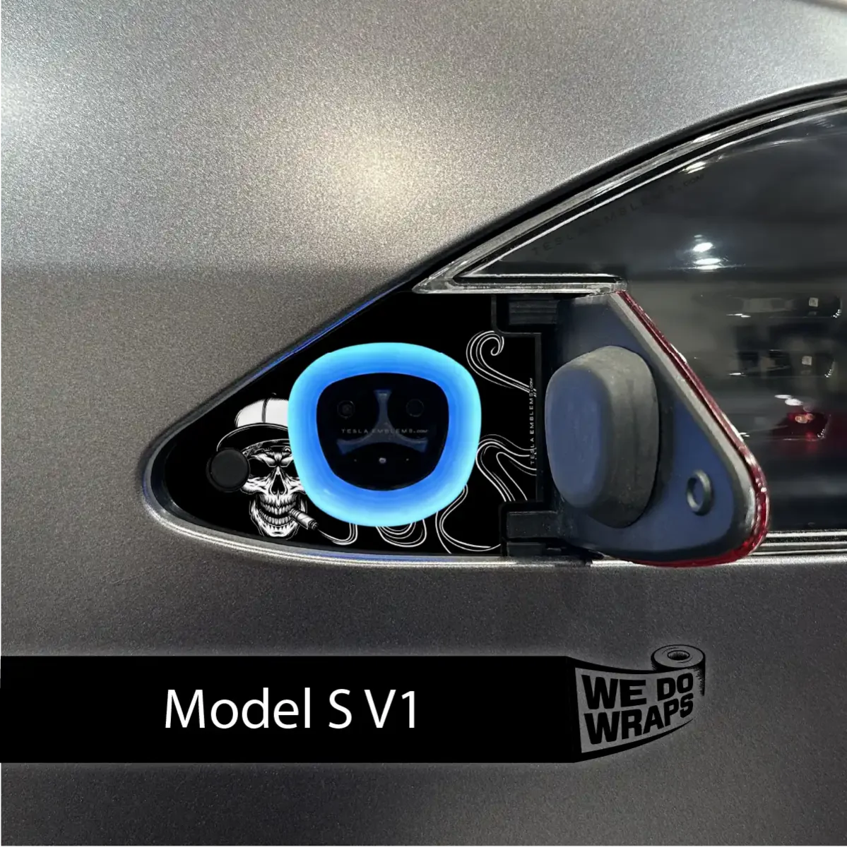 Smoke the competition by personalizing your Tesla charge port with our moody Smoking Skull wrap design.