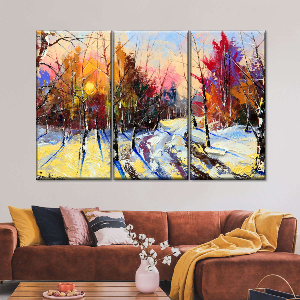 Snowy Forest Wall Art carefully handcrafted to bring unique style into your home. Change the entire feel of any space and make an interesting statement with this abstract canvas print.
