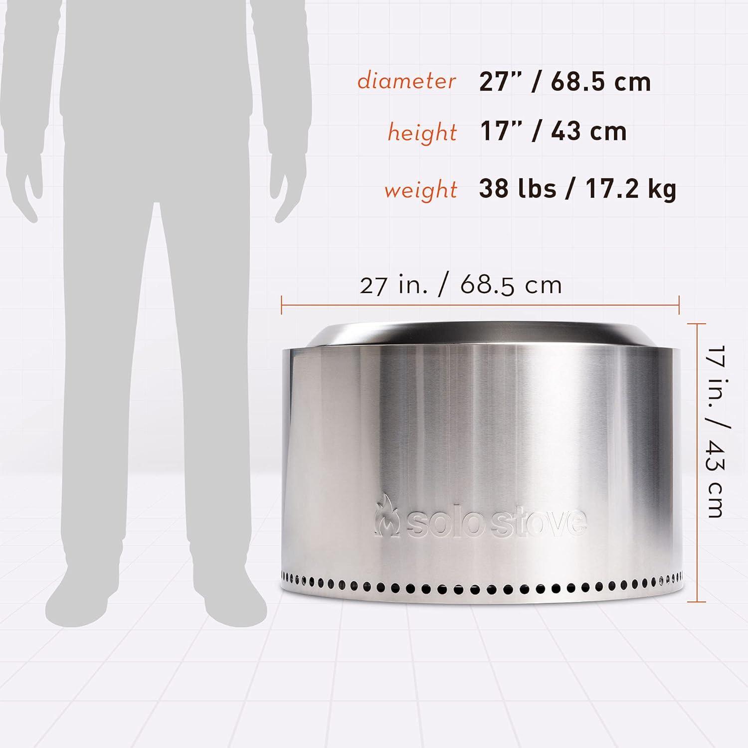 - LARGEST SOLO STOVE: Coming in at 27 inches, the Yukon out measures all other Solo Stove fire pits, creating the hottest and most effective fire to make time with your friends and family richer. Enjoy S'mores and Hot Dogs by the fire and relax. The new 2.0 version features a removable base plate and ash pan for easy cleaning.