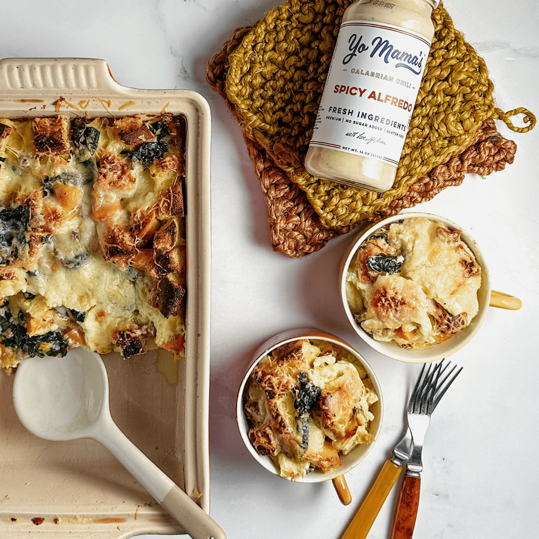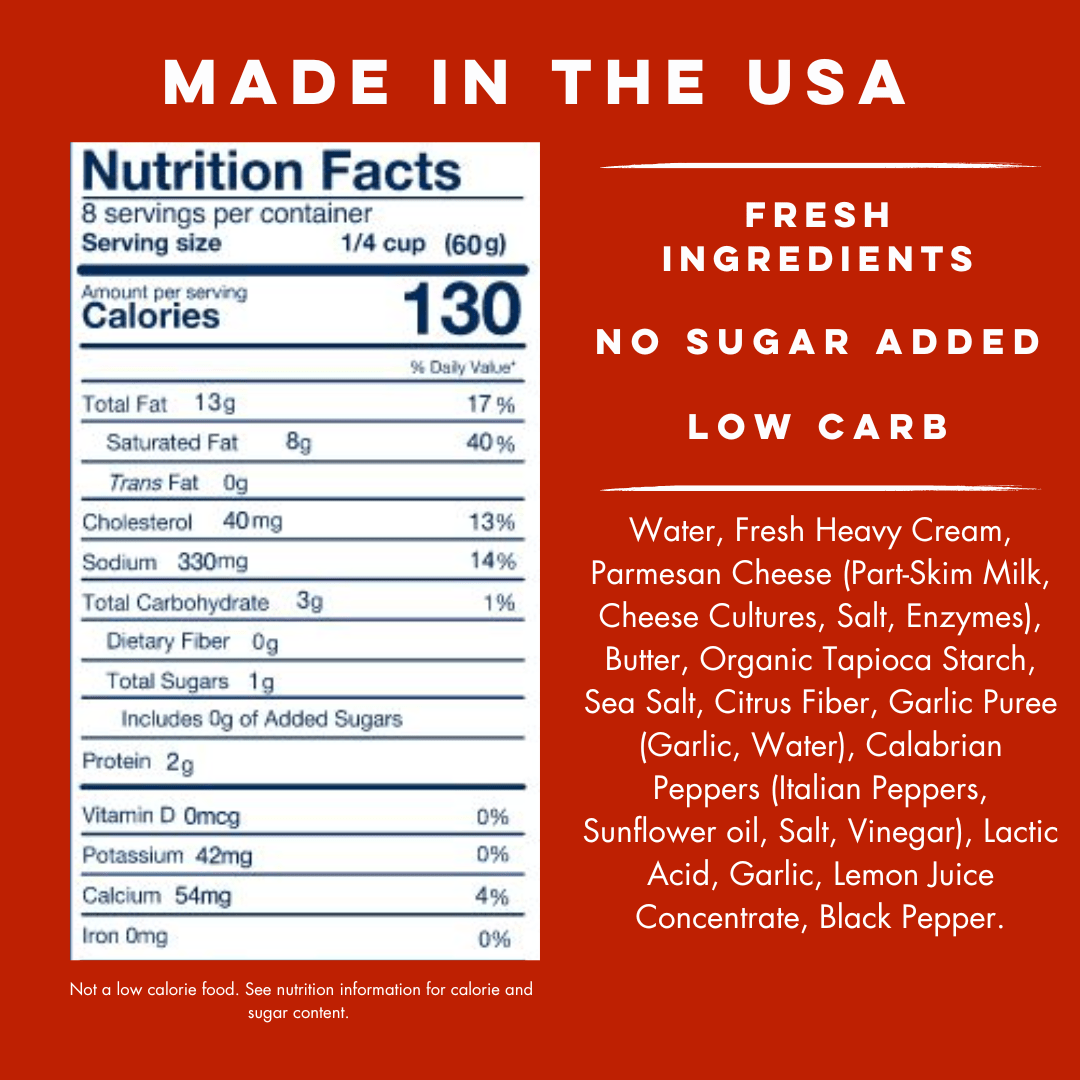Yo Mama's Spicy Alfredo Sauce is inspired by Mama's homemade recipe, handcrafted in small batches. Made with Calabrian Chili, real butter, cream, and Parmesan cheese, our recipe is free from added preservatives, gums, and fillers. Indulge in this masterpiece, which contains no added sugar or gluten. Elevate your meals with Yo Mama's Spicy Alfredo Sauce, a celebration of tradition and passion in every jar.
