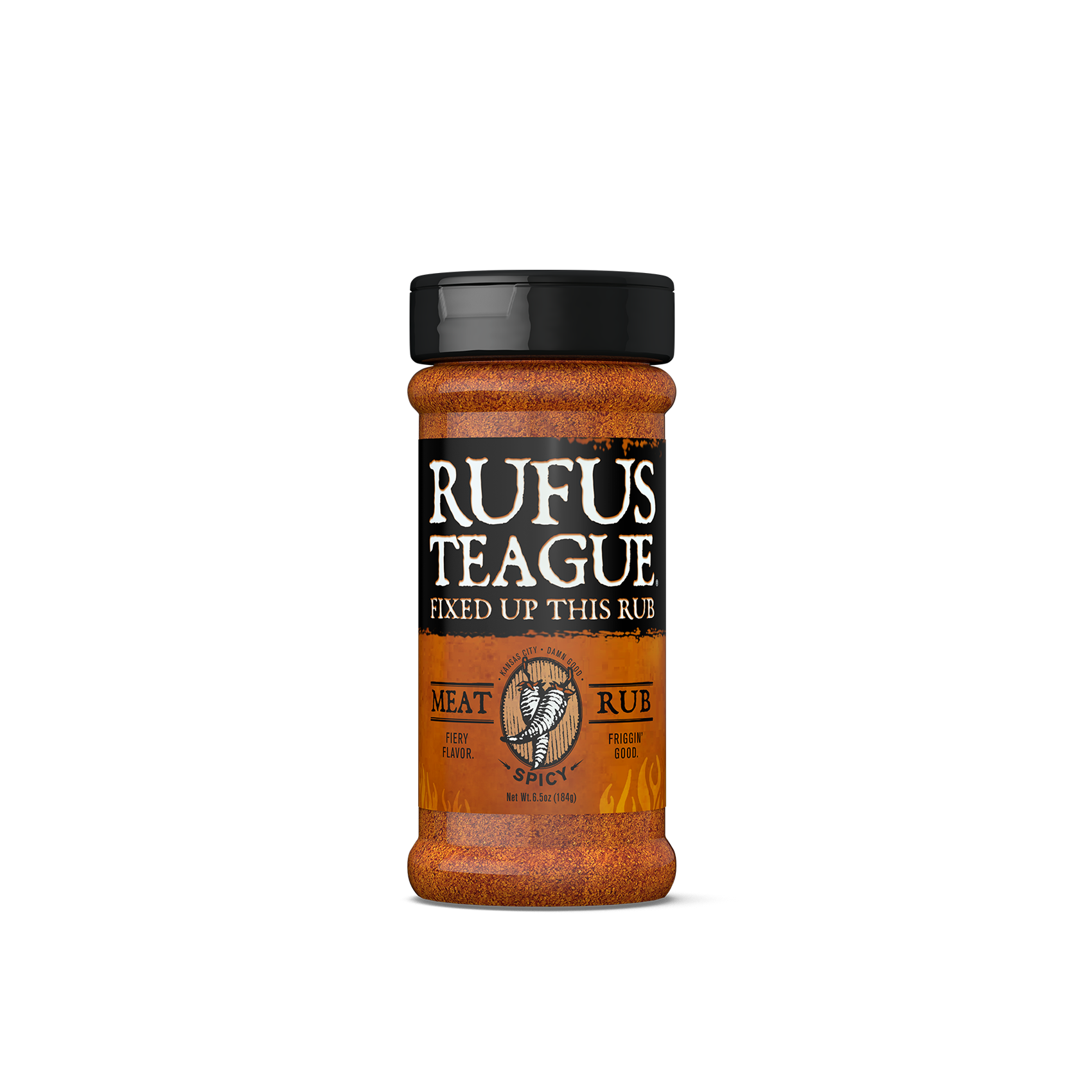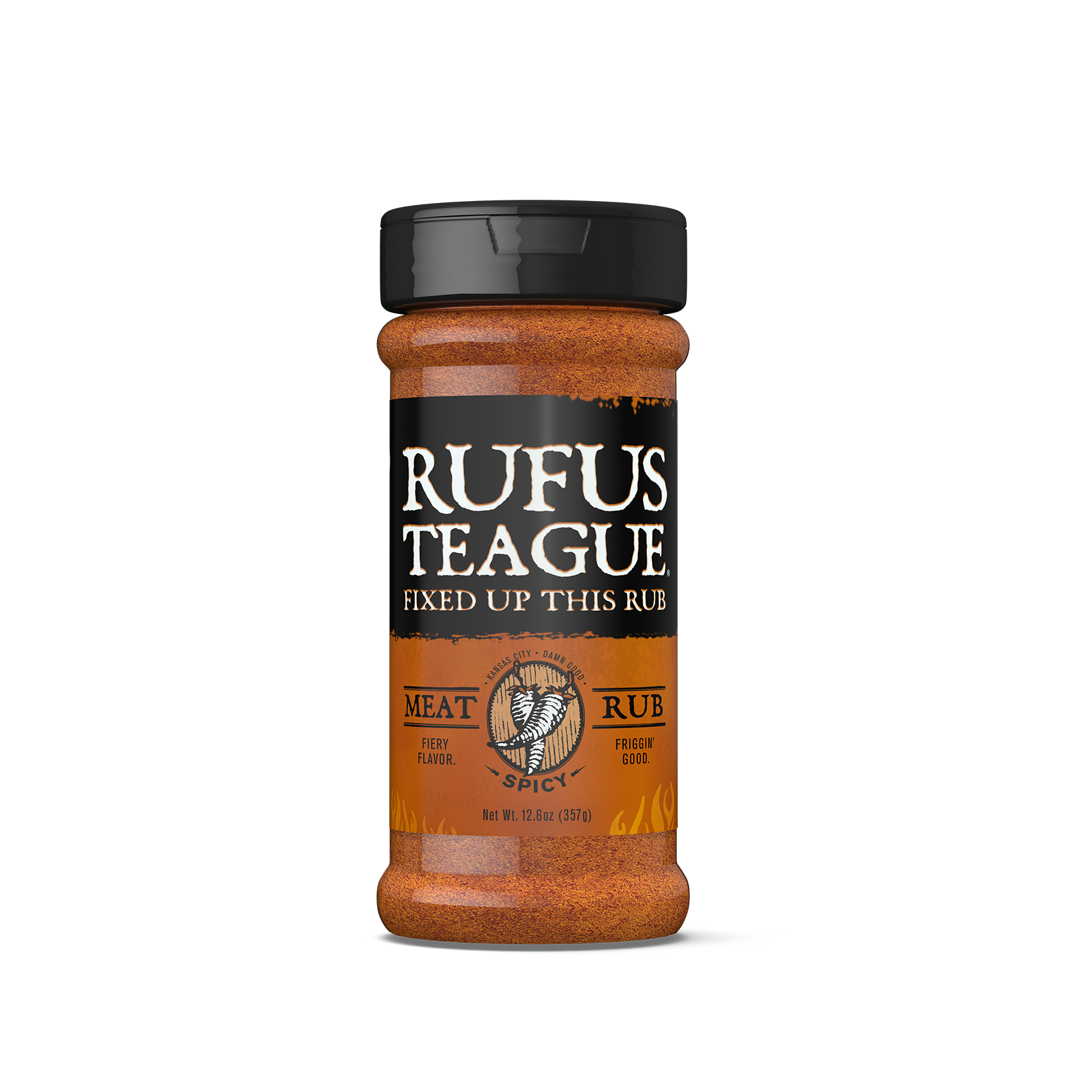 Rufus Teague’s famous Meat Rub, just kicked-up a notch. Add serious flavor by slapping on some savory and spicy seasonings. You’ll get authentic barbecue flavor with a dash of heat to wake up your soul.