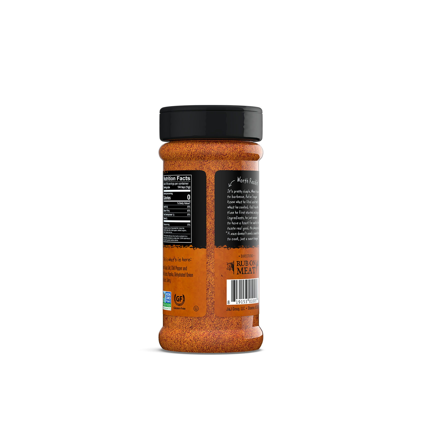 This is the real deal, not some cheap knockoff. Made with the finest ingredients, our rub is Gluten-free and Non-GMO verified. So, make your meat happy and remember, Rufus always said, “Good sauce makes bad barbecue good and good barbecue gooder.”