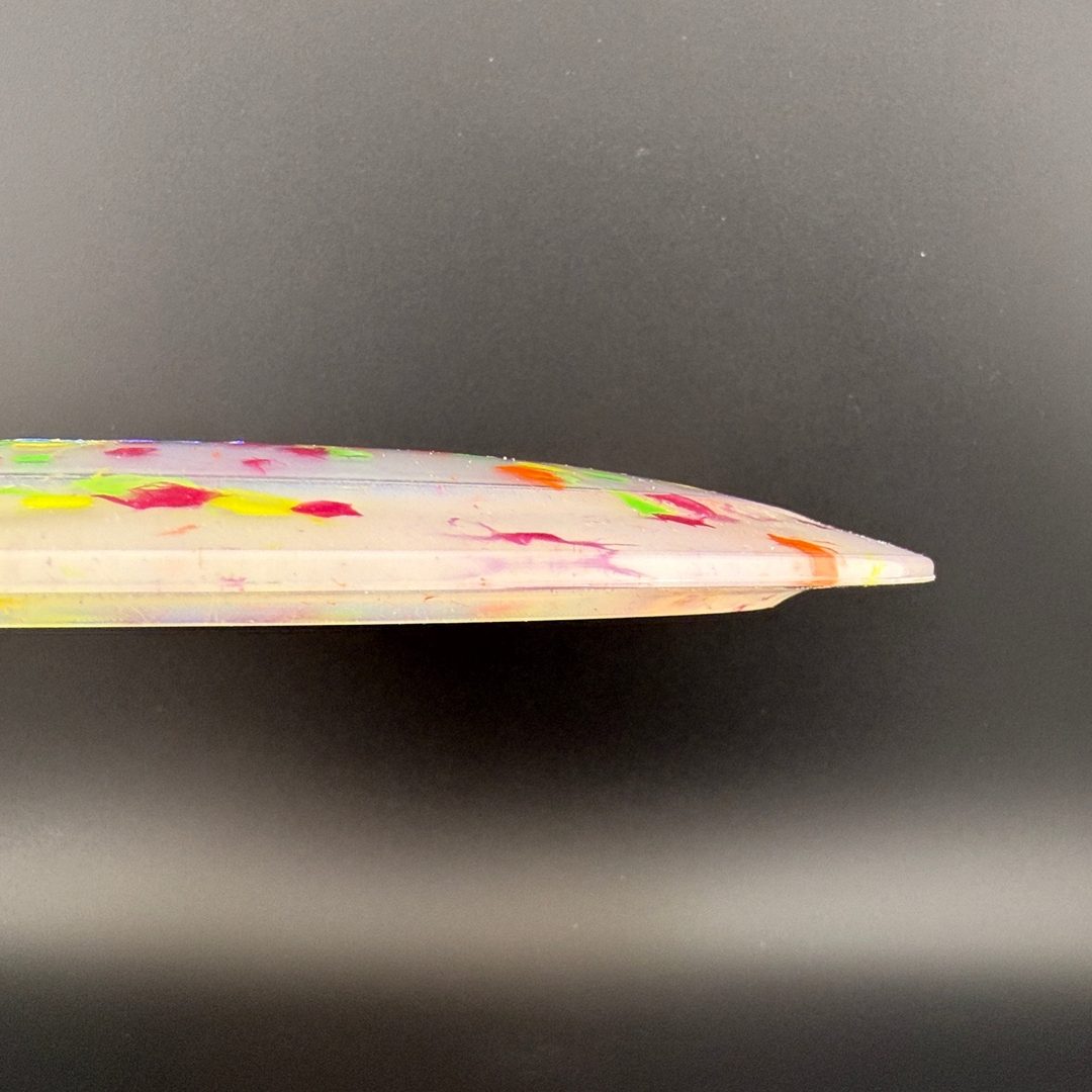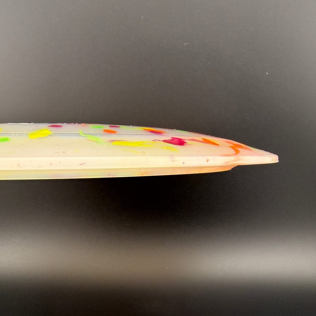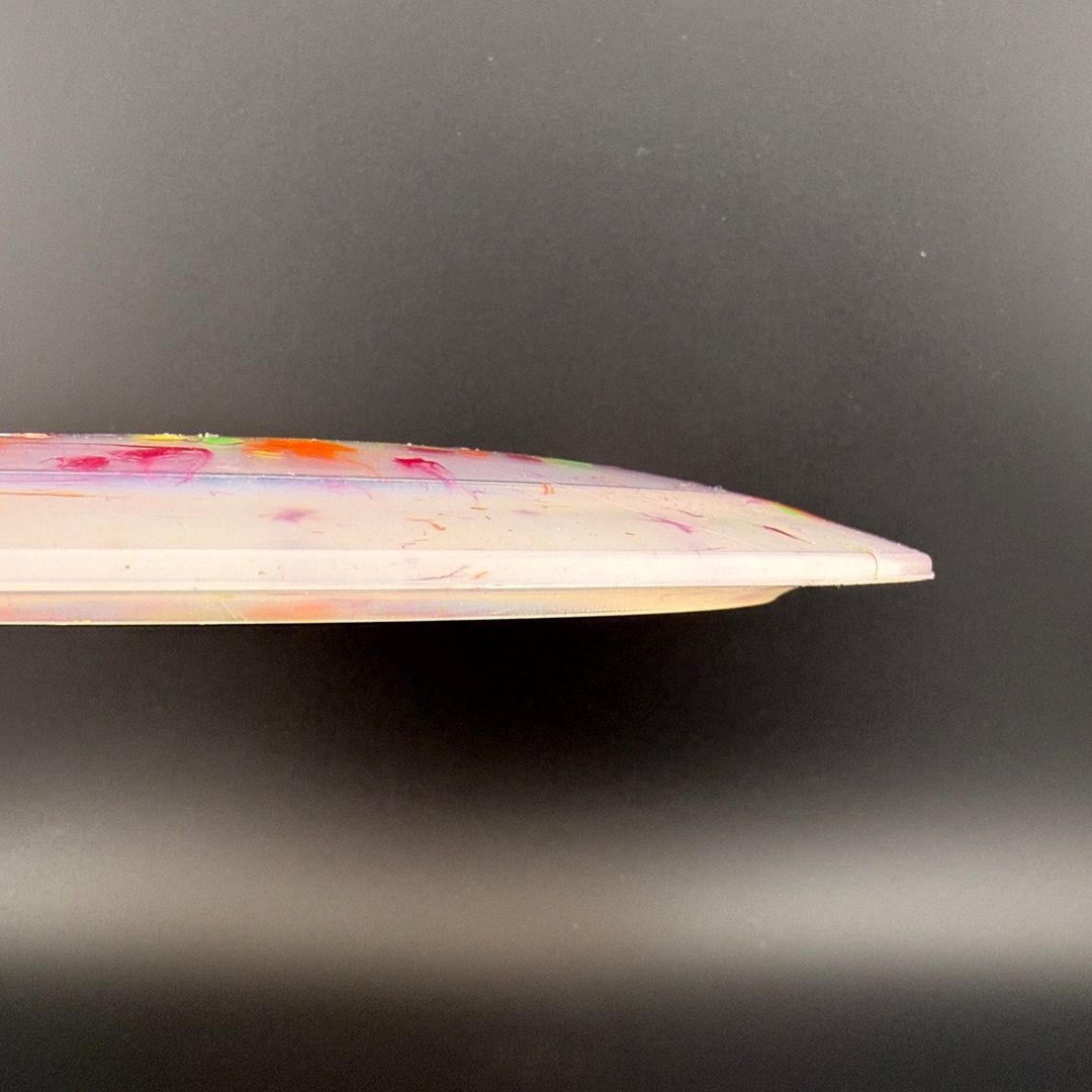 Egg Shell plastic is a surprisingly grippy, yet semi-firm plastic blend with some really fun decorative effects like splatters, swirls, and sparkles. It helps the Dino Disc models look bright and whimsical, perfect for players who love lightweight, floating discs.