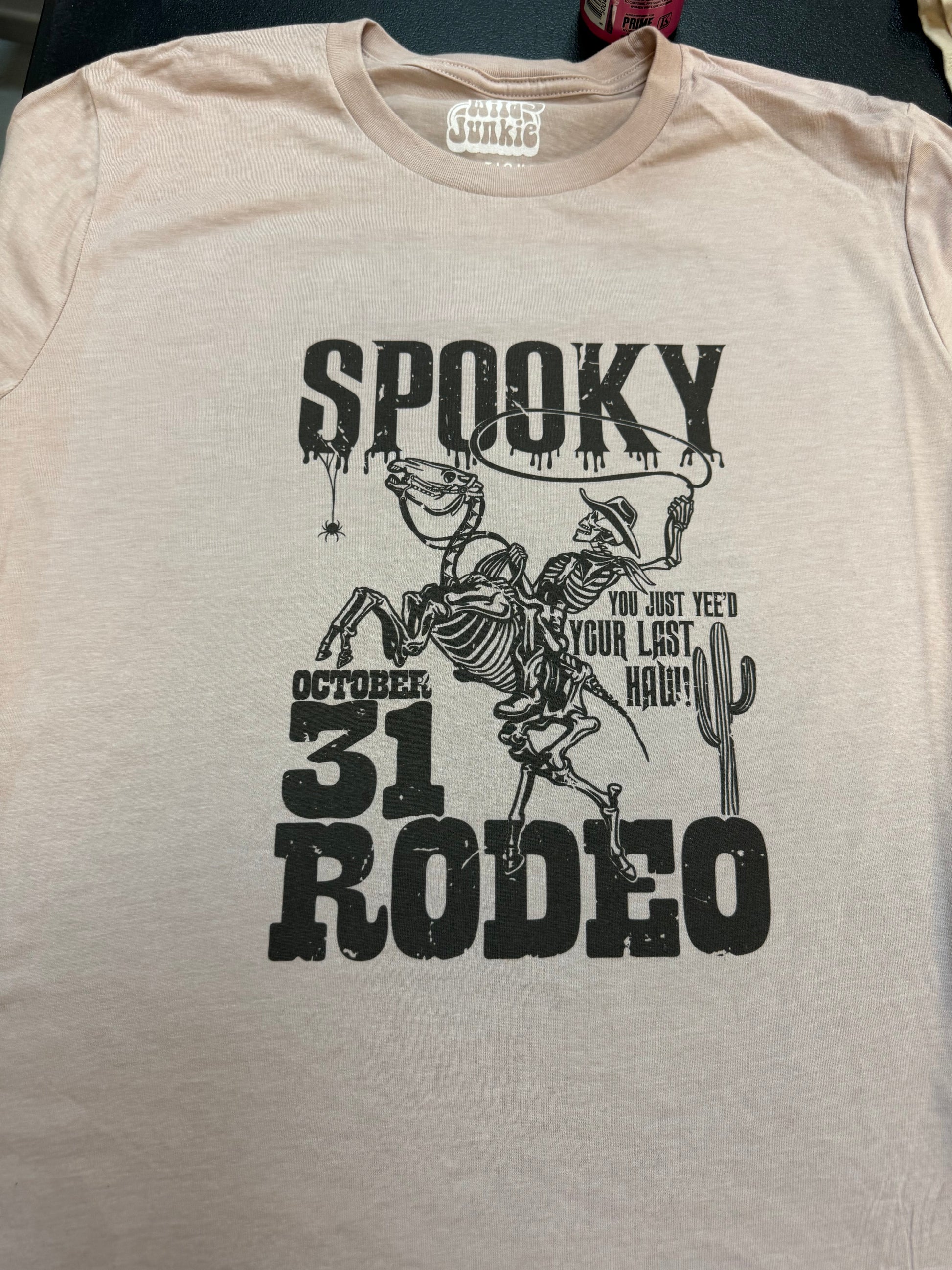 Wrangle up some spooky fun on with the "Spooky Rodeo" graphic tee! This hauntingly awesome design combines classic rodeo graphics with a Halloween twist. Perfect for rodeo fans who love a little eerie yeehaw, it's a boo-tiful way to celebrate the spooky season.