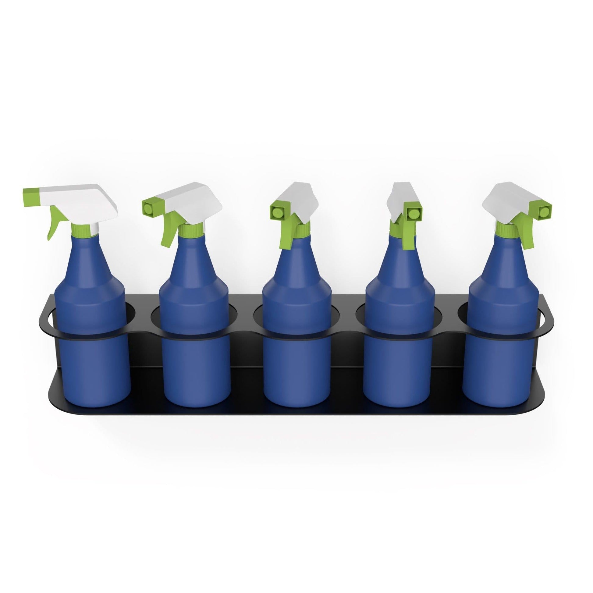 All-Purpose Spray Bottle Organizer – This wall-mounted spray bottle holder is designed to hold a variety of everyday spray bottle products such as household or janitorial commercial kitchen and bathroom cleaners, garden products, cooking oils, and more,