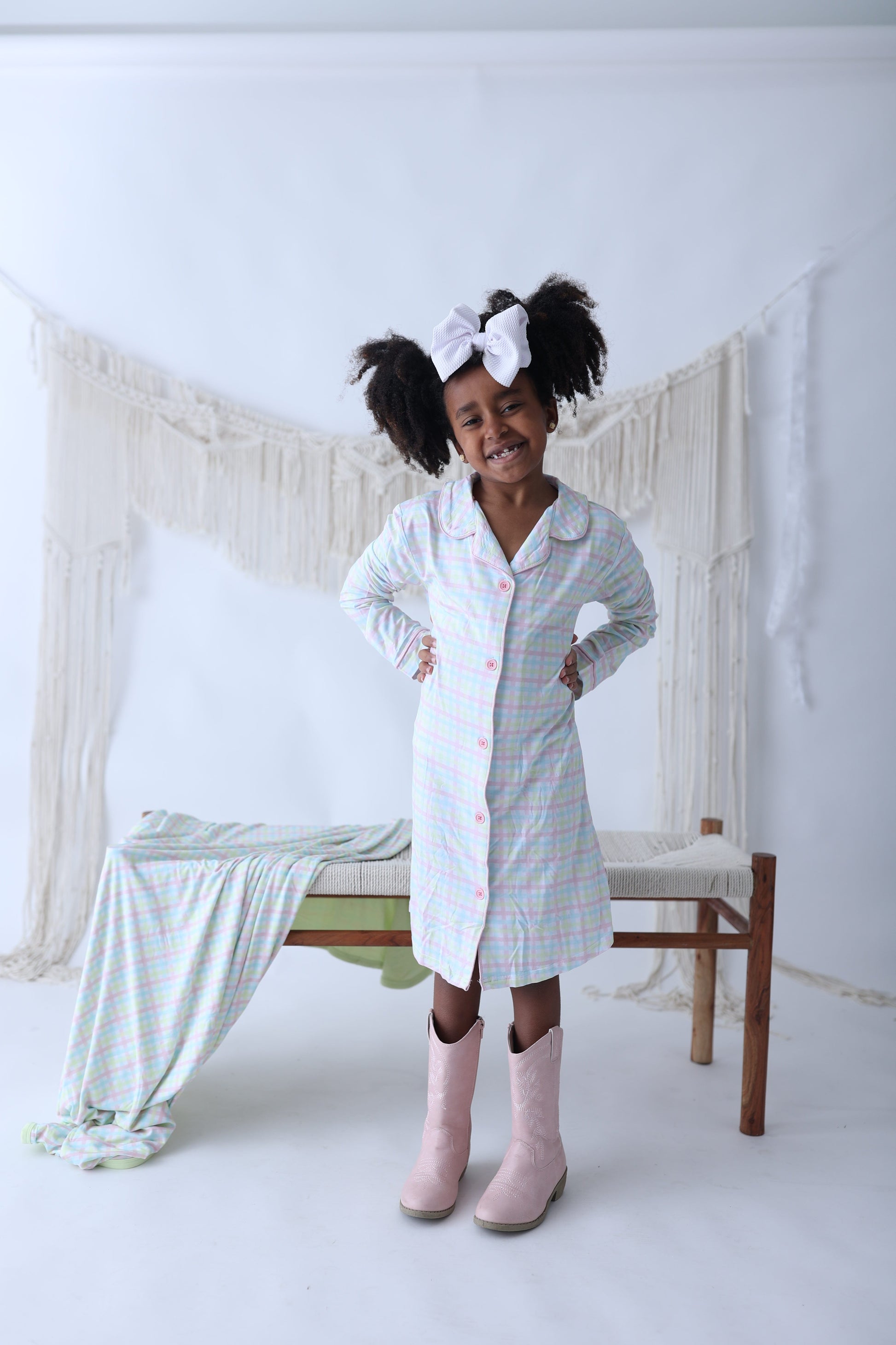 Wrap your little one in the gentle embrace of our Bamboo Spring Gingham Nightgowns, just in time for Easter! Delightfully soft and comfortable, these whimsical creations are perfect for sensitive skin. With a beautiful gingham print, let the playful charm of spring unfold in every bedtime twirl. A cozy, stylish treat for your precious girl!