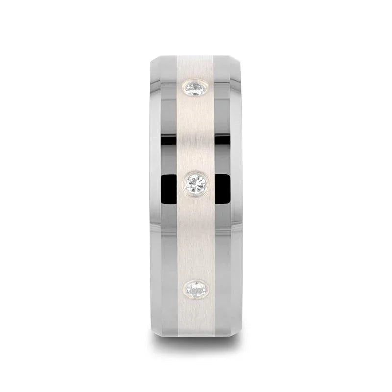 STAFFORD Silver Inlaid Beveled Tungsten Diamond Wedding Band - 8mm