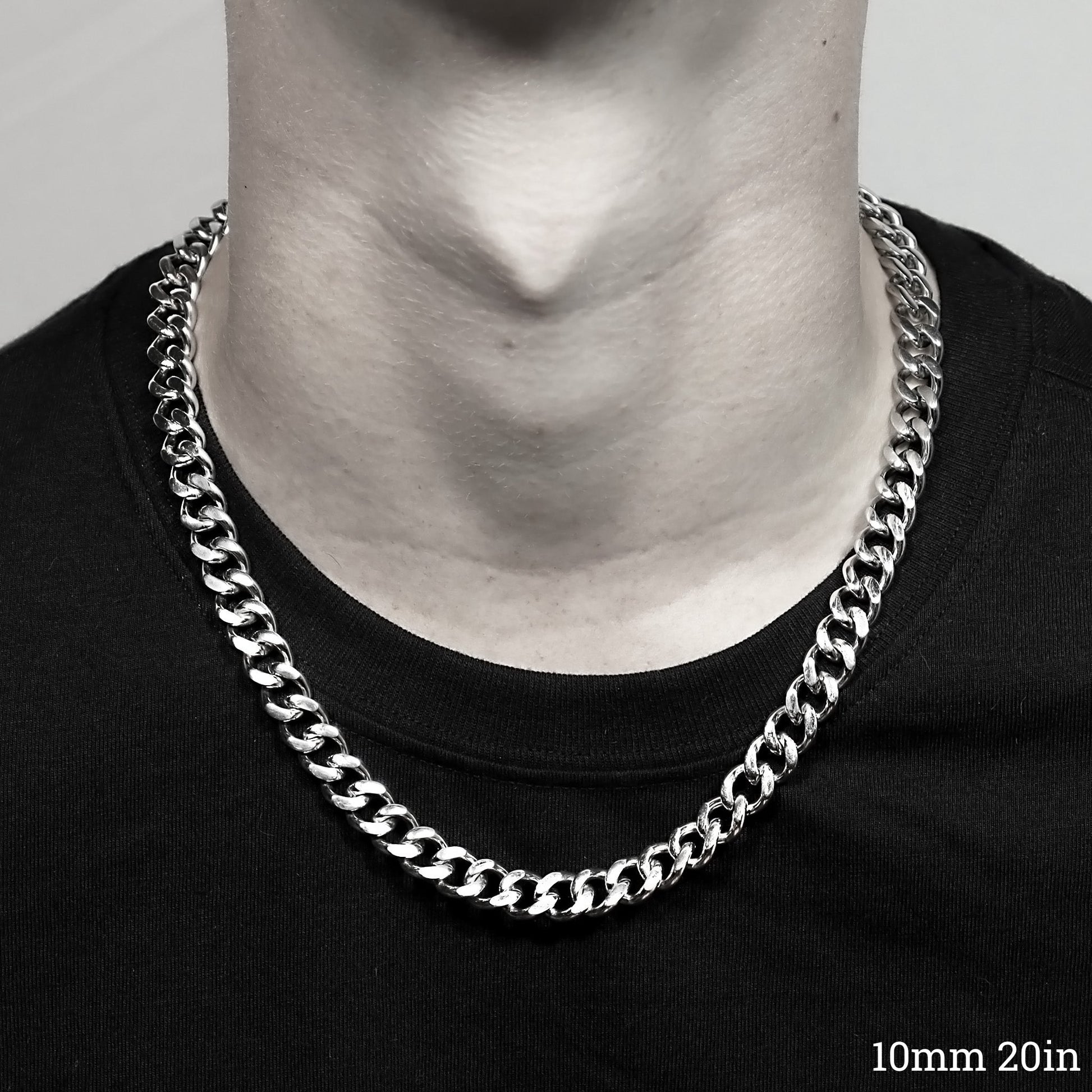 The Stainless Steel Diamond Cut Curb Chain Necklace is nothing short of a classic and is our #1 Best Selling Chain. Made with premium polished stainless steel in a classic diamond cut curb chain design, this chain necklace is a staple piece to keep in your collection. The curb chain necklace is great for wearing alone, layering with other necklaces, and even adding personal pendants for a unique touch. This chain is available in a variety of widths, you can choose a smaller width for a minimalist look, or choose a larger width to wear more as a statement piece. So whether you treat yourself or gift to a loved one, this versatile Curb Chain Necklace is a sure winner for any style for both men and women.