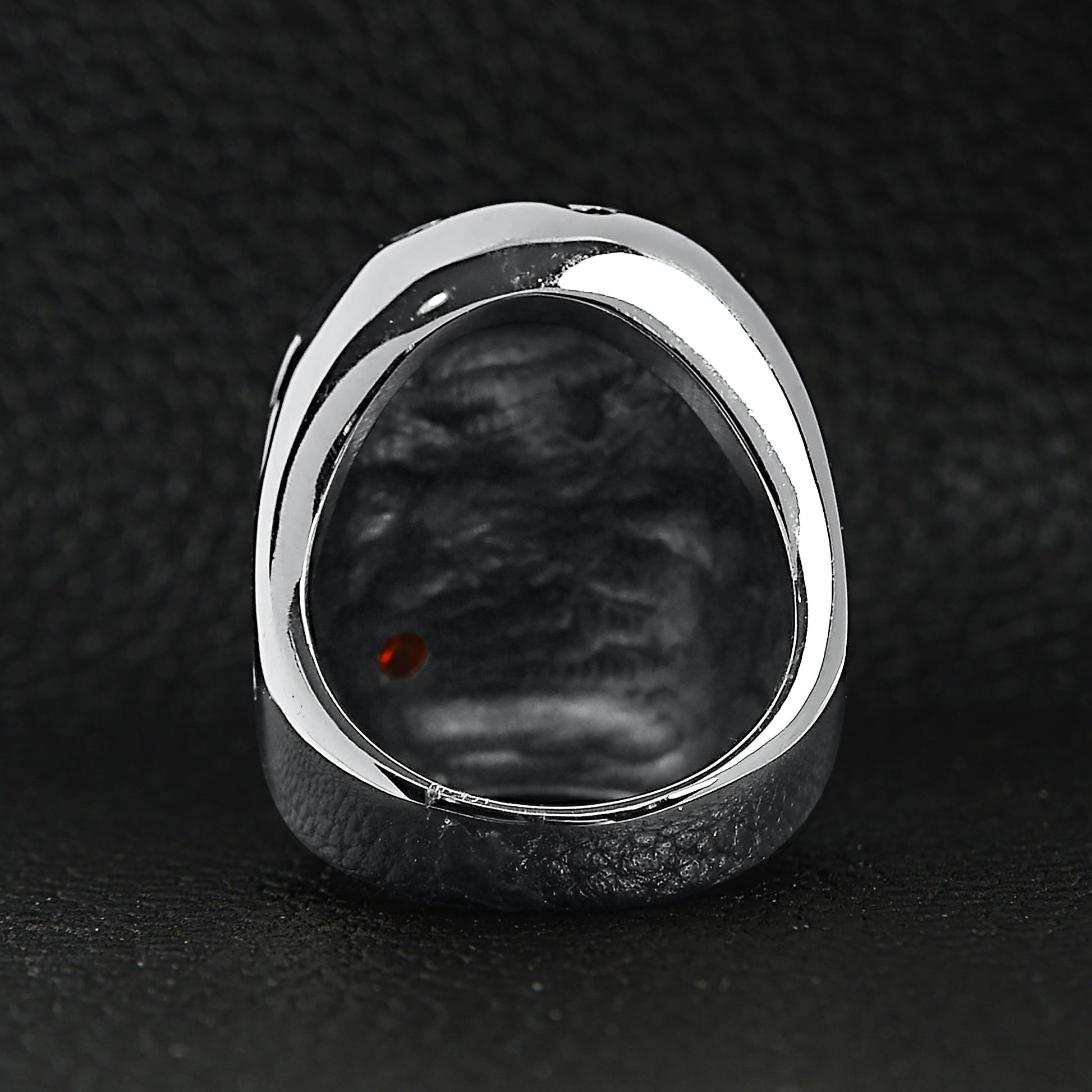 Stainless Steel Large Filigree Skull Biting Red CZ Rose Ring