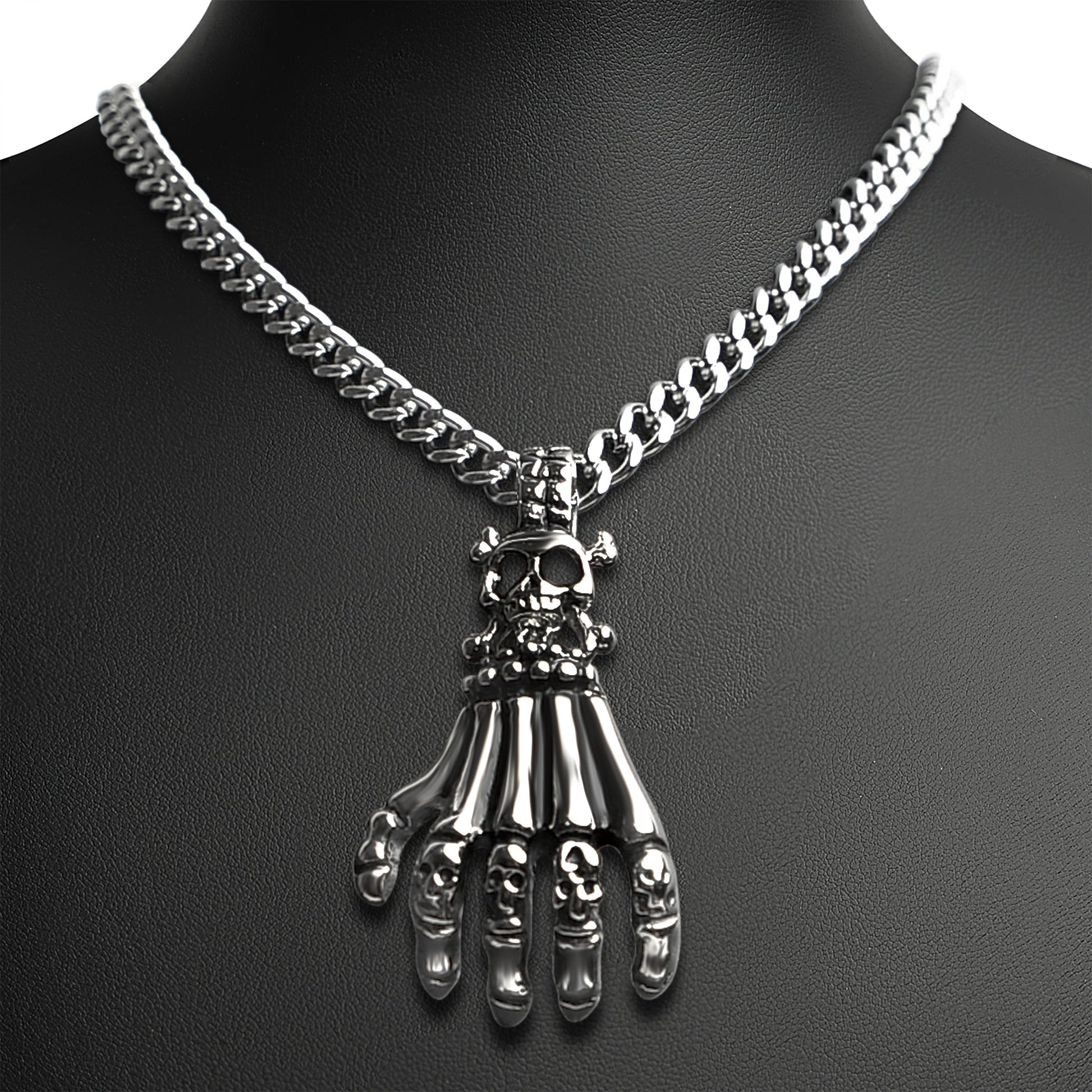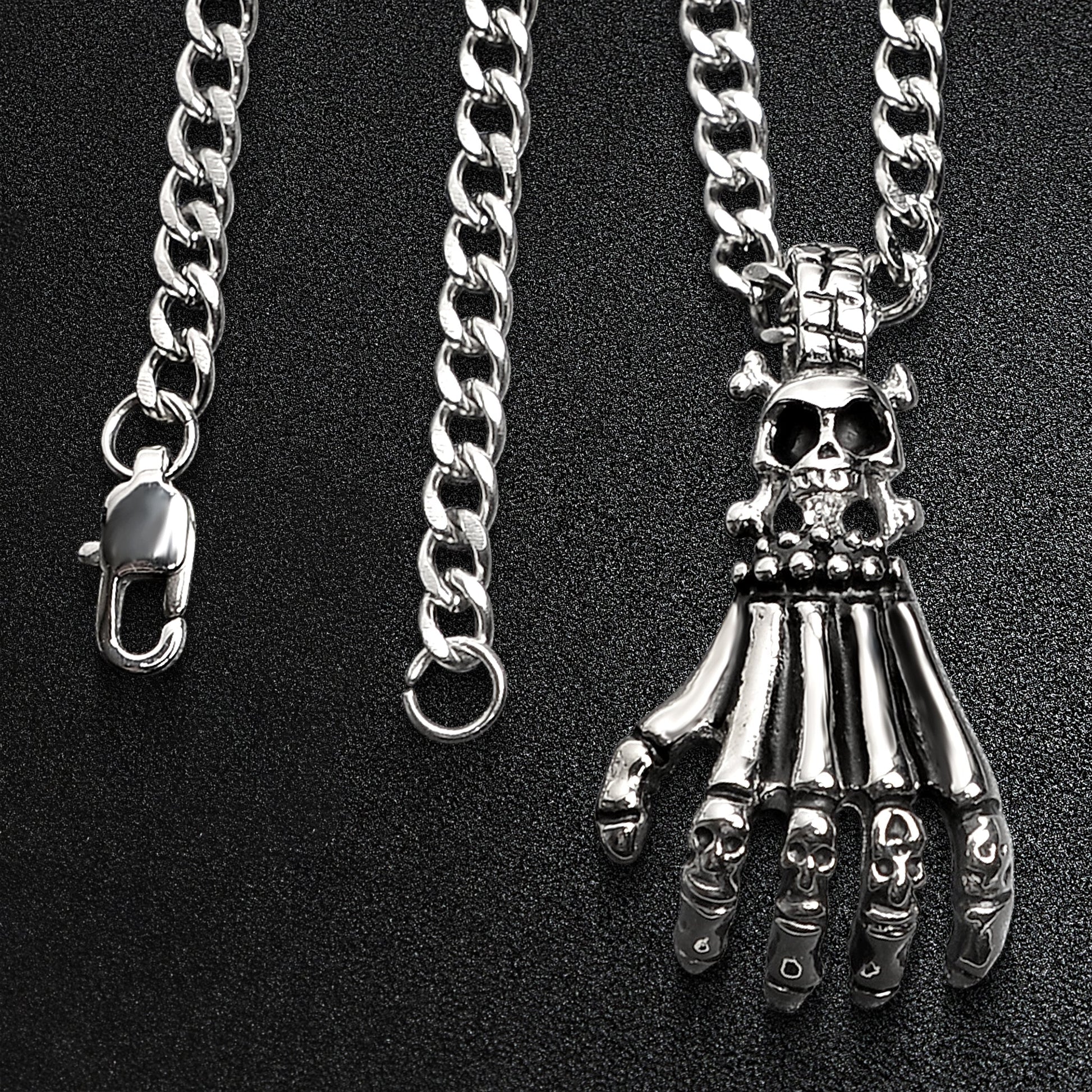 Stainless Steel Skull Skeleton Hand Curb Chain Necklace