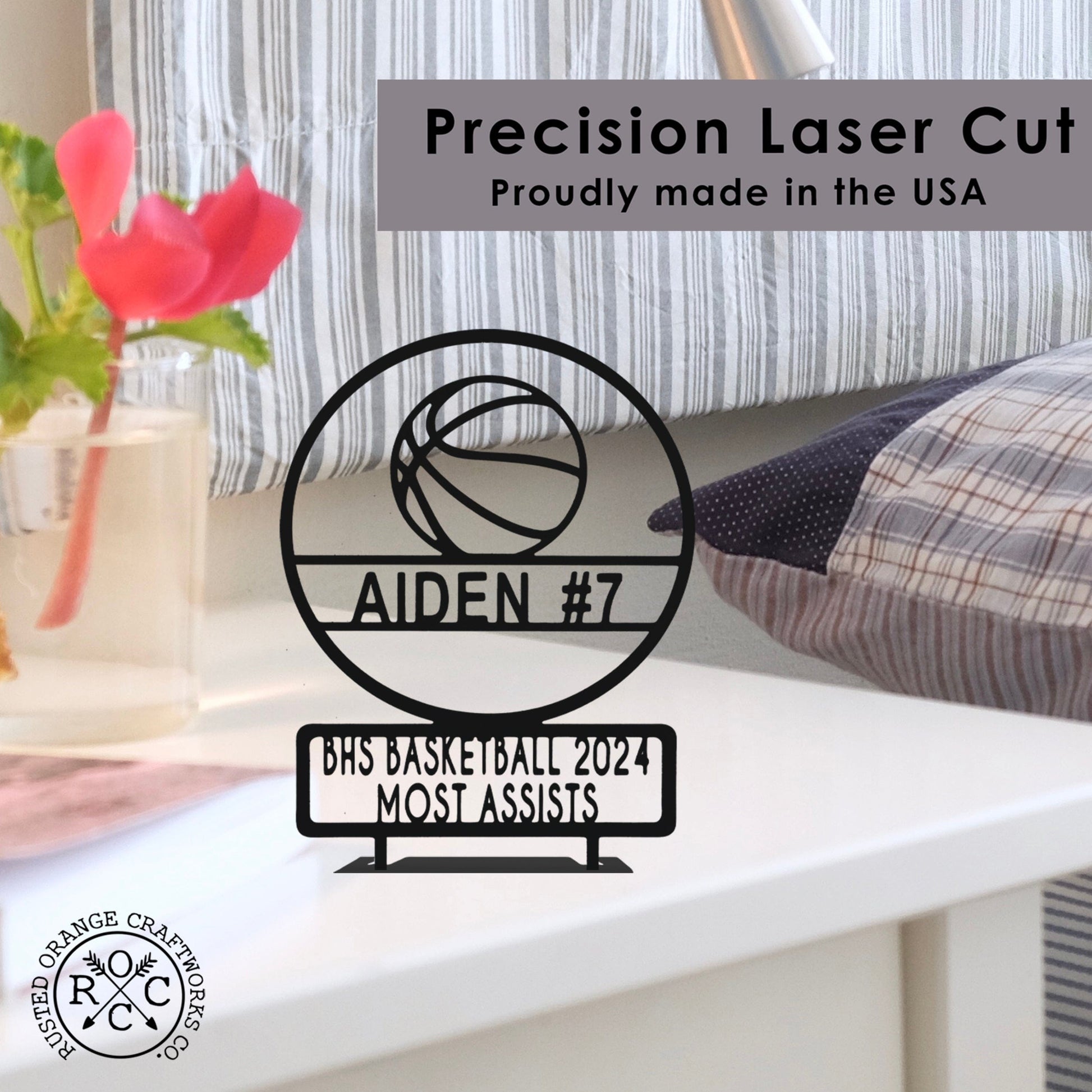 Celebrate athletic achievements with our customizable trophy, available in over 30 sports-themed designs, including soccer trophies for kids, volleyball coaches gifts, and football-themed party favors. Made of durable steel, this customized trophy award is perfect for honoring players, coaches, and teams. Personalize the trophy by adding the player's or coach’s name and up to 40 characters of custom text. Choose from sleek powder-coated finishes in black, white, or silver, or opt for raw steel for a rustic look (note that raw steel may rust). Available in 4-inch, 6-inch, or 9-inch sizes, each trophy features a round outline with a laser-cut sports theme graphic at the center.