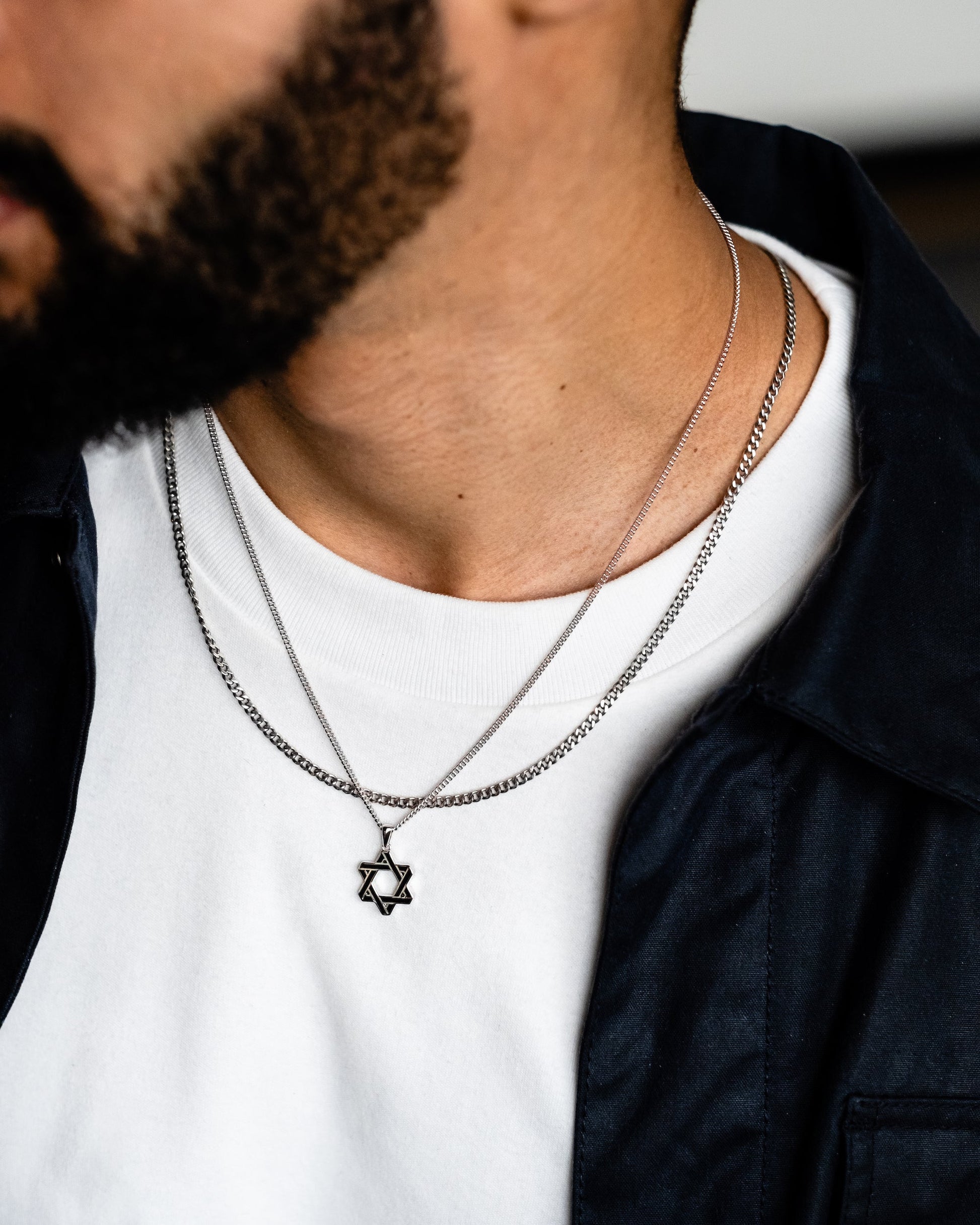 A tribute to the spirit of adventure, this pendant design features a compass rose with an onyx stone in the middle. The Curb chain is as classic as it gets, making it the perfect chain to pair with the Compass pendant. The 925 Sterling Silver ensures these chains can be worn day in and day out.
