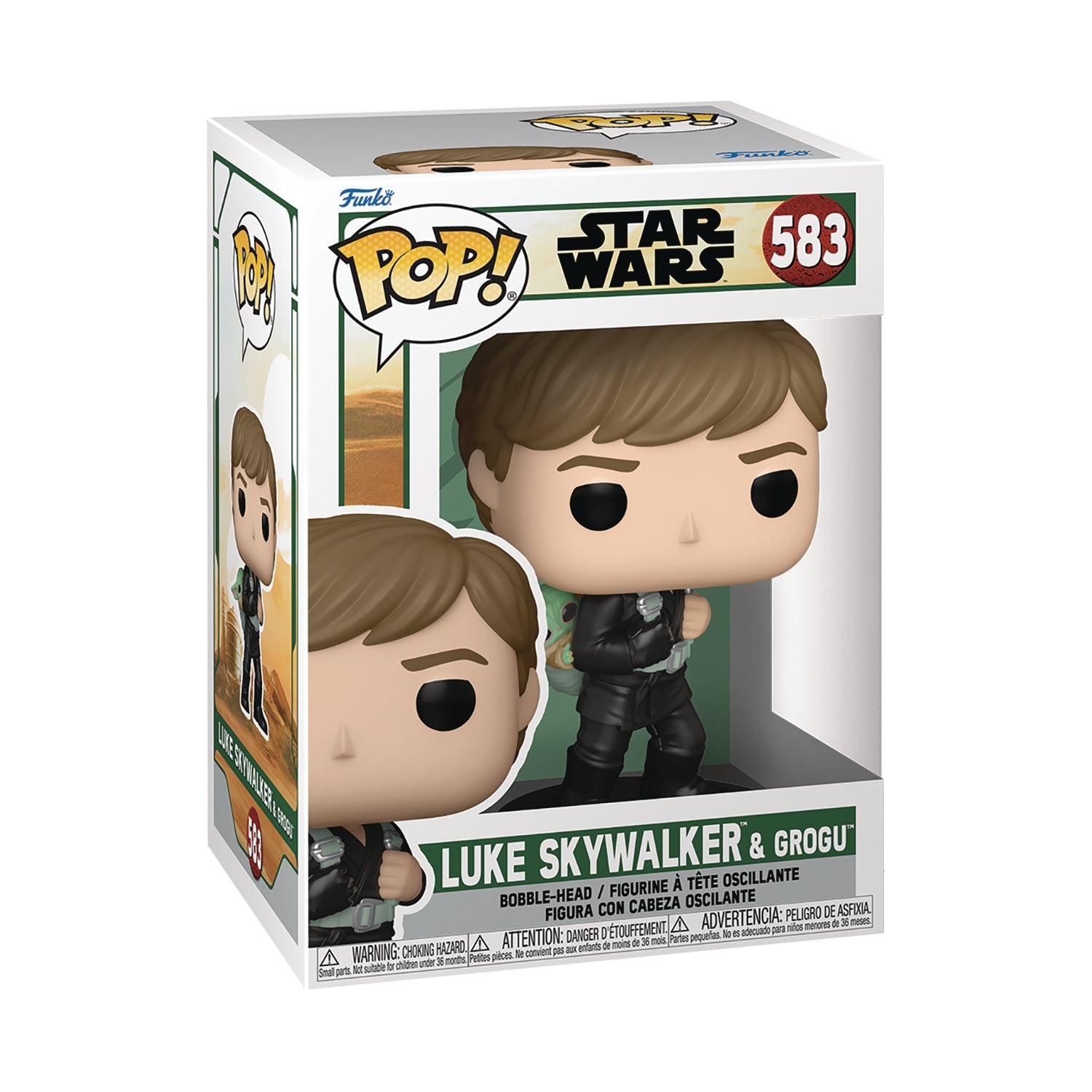 This Star Wars: Book of Boba Fett Luke Training Pop! Vinyl Figure measures approximately 3 3/4-inches tall. Comes packaged in a window display box.