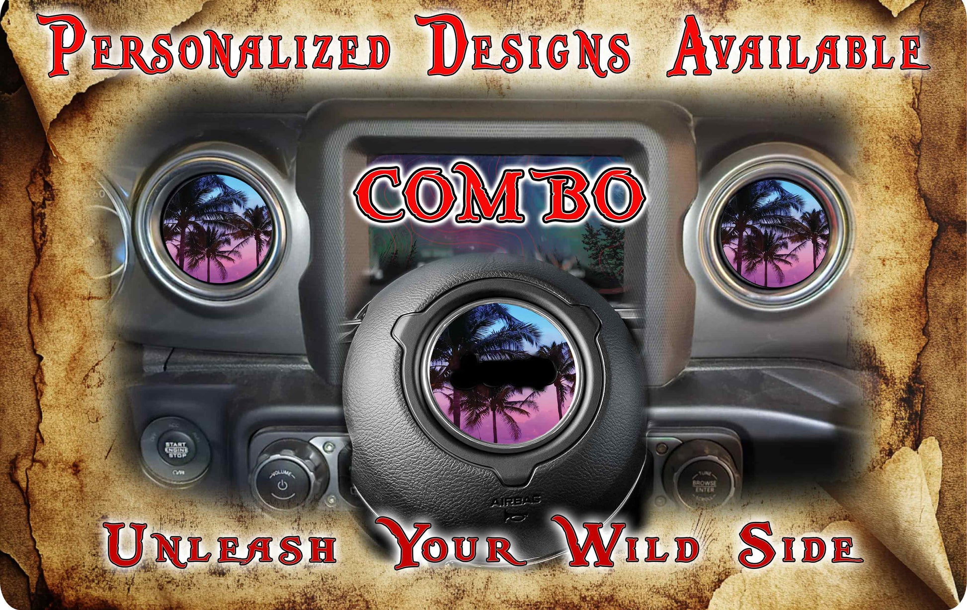 1 steering wheel decal and 2 selector knob decals 4 vent decals -
