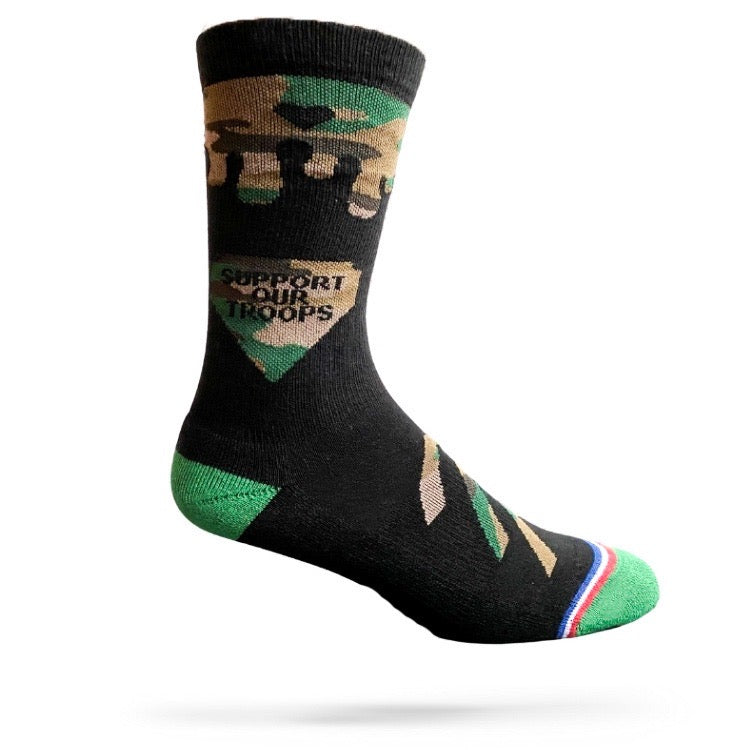 About the design: The artist behind this design is 13 year old Leilani S. Leilani was the winner of a "design a sock" competition we held at Fort Campbell USO, and this sock is named after her father, Staff Sergeant Brandon Stephan.