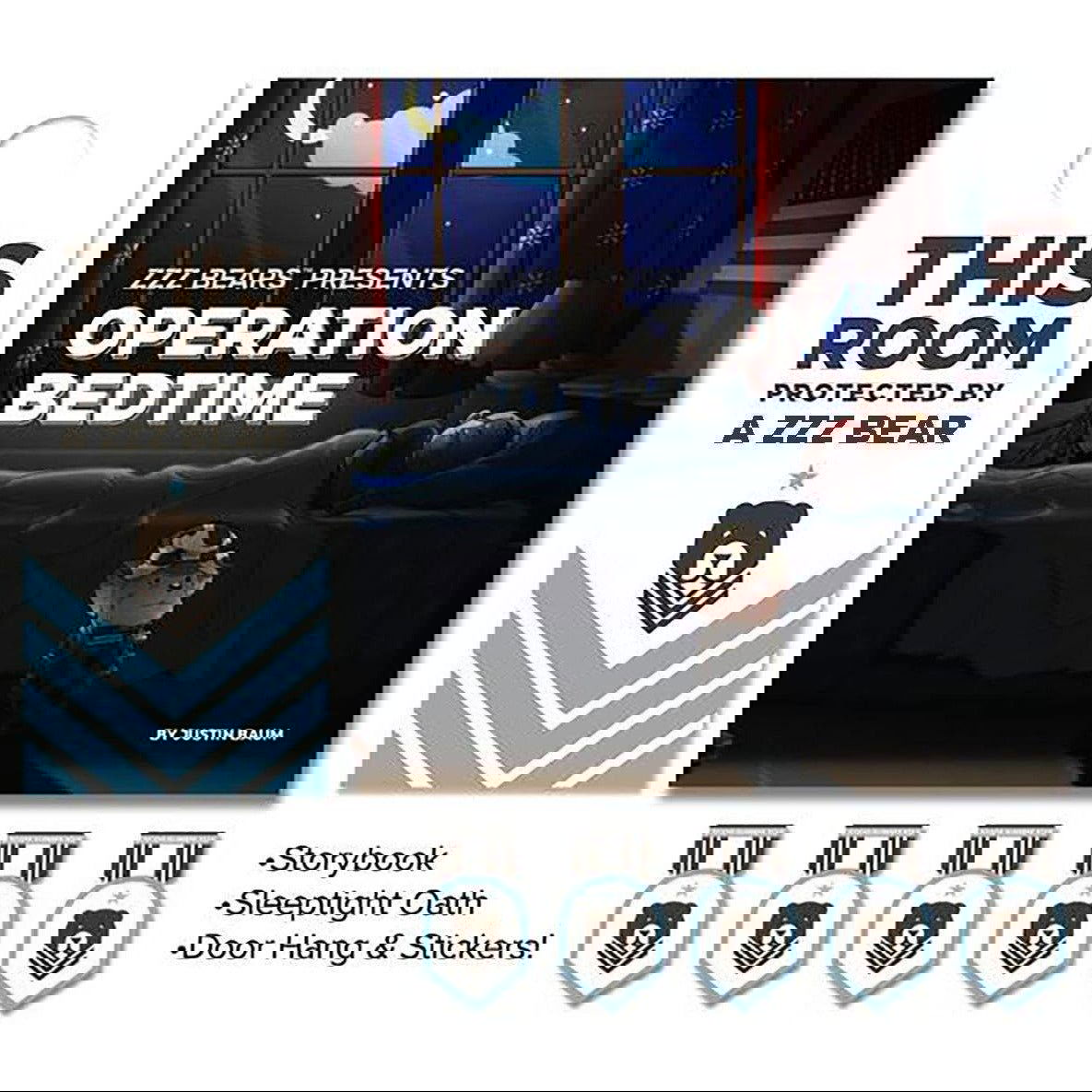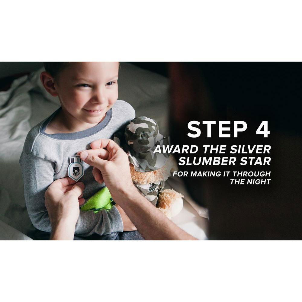 Get your kids to bed with military precision with the storybook and 4 step sleep system. Operation Bedtime tells the story of a young boy overcoming his fear of the dark with the help of a special bear - with the power to protect, the power to care - and his magical sleep system.