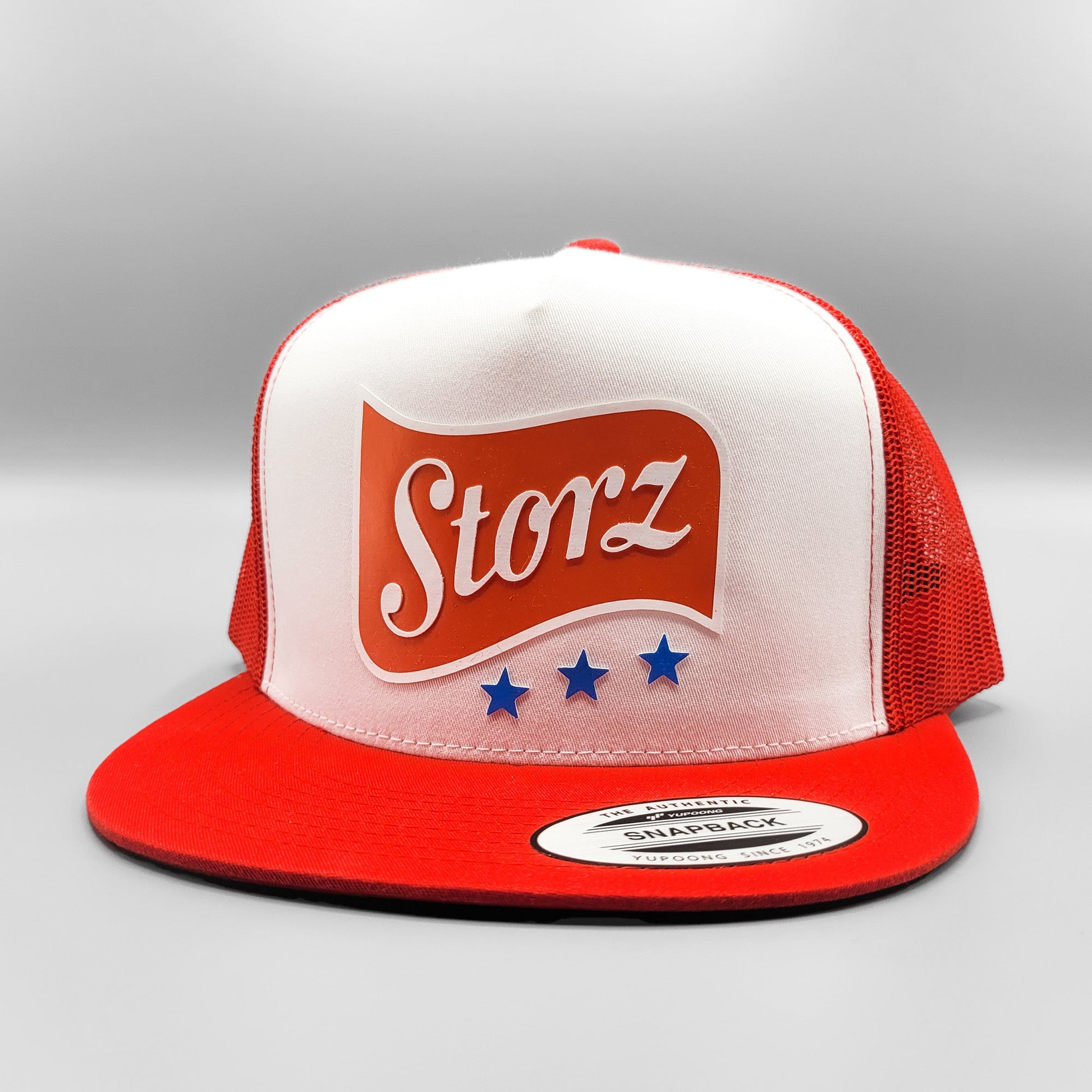 Get this piece of brewing history! This Storz Beer classic trucker hat features a dimensional red, white and blue stars logo on a white and black mesh, premium Yupoong 6006 Classic high-crown mesh snapback baseball cap.