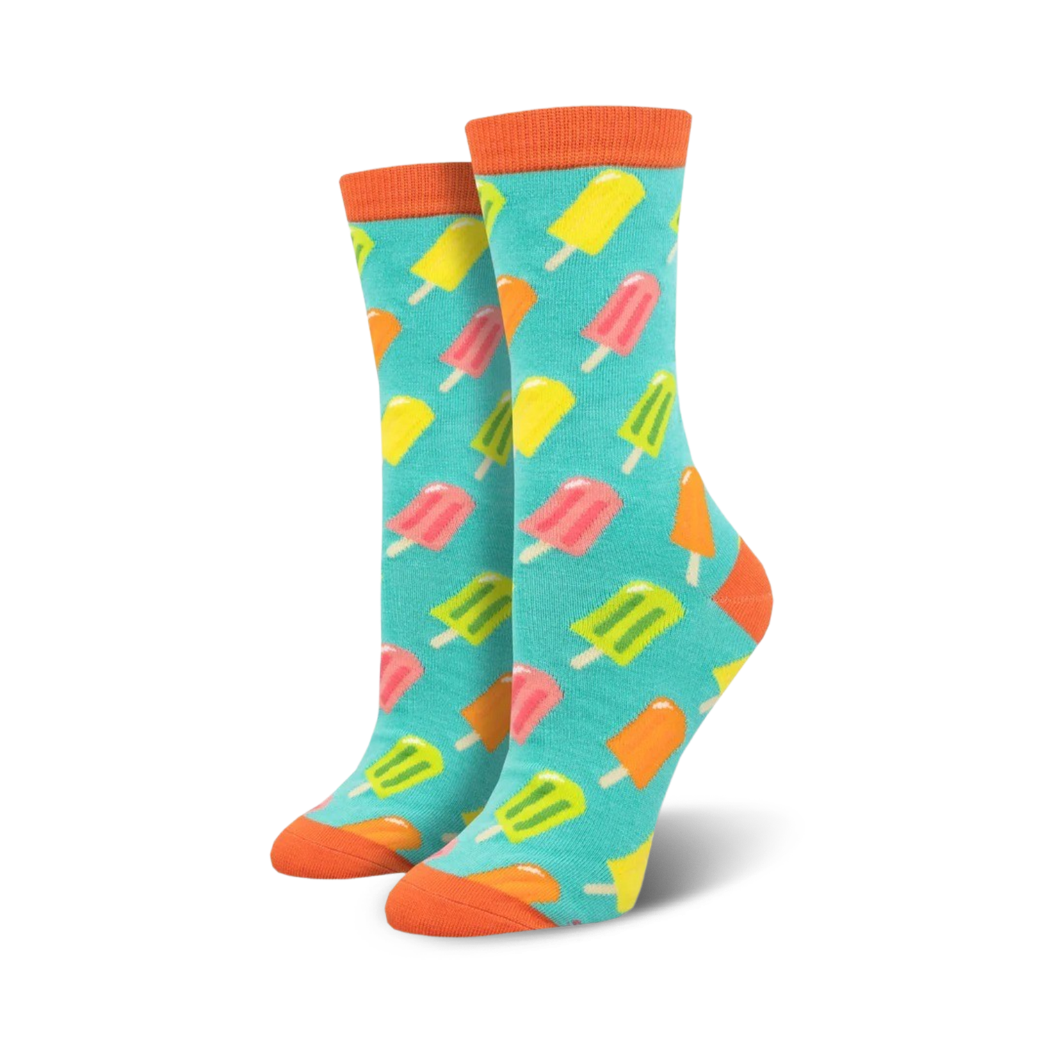 Quench your thirst for fun with our Summer Juice Pops Bamboo Socks! These fruity gems are bursting with juicy popsicles in flavors of pink, yellow, orange, and green, all set against a cool blue background. With these fun, colorful socks on your feet, you'll feel like you're on a beach vacation every day! Don't be surprised if your friends start craving popsicles when you wear them - these socks are that mouthwatering!