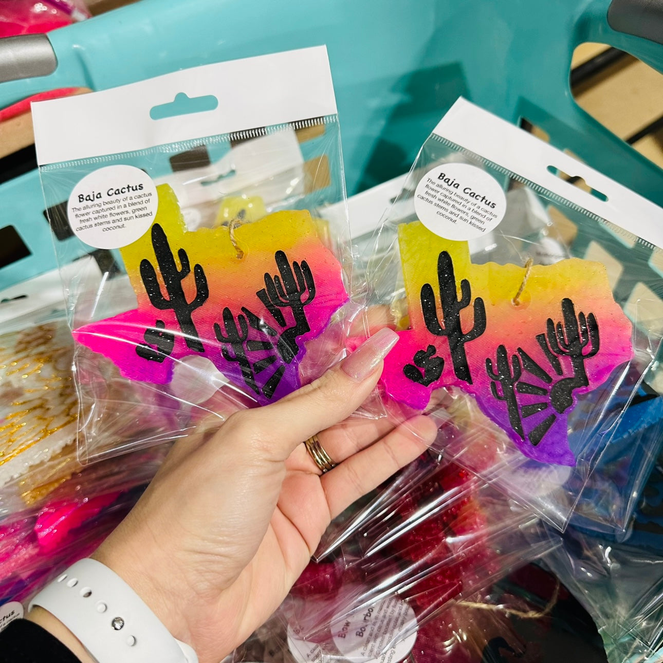 Baja Cactus: The alluring beauty of a cactus flower captured in a blend of fresh white flowers, green cactus stems and sun kissed coconut.
