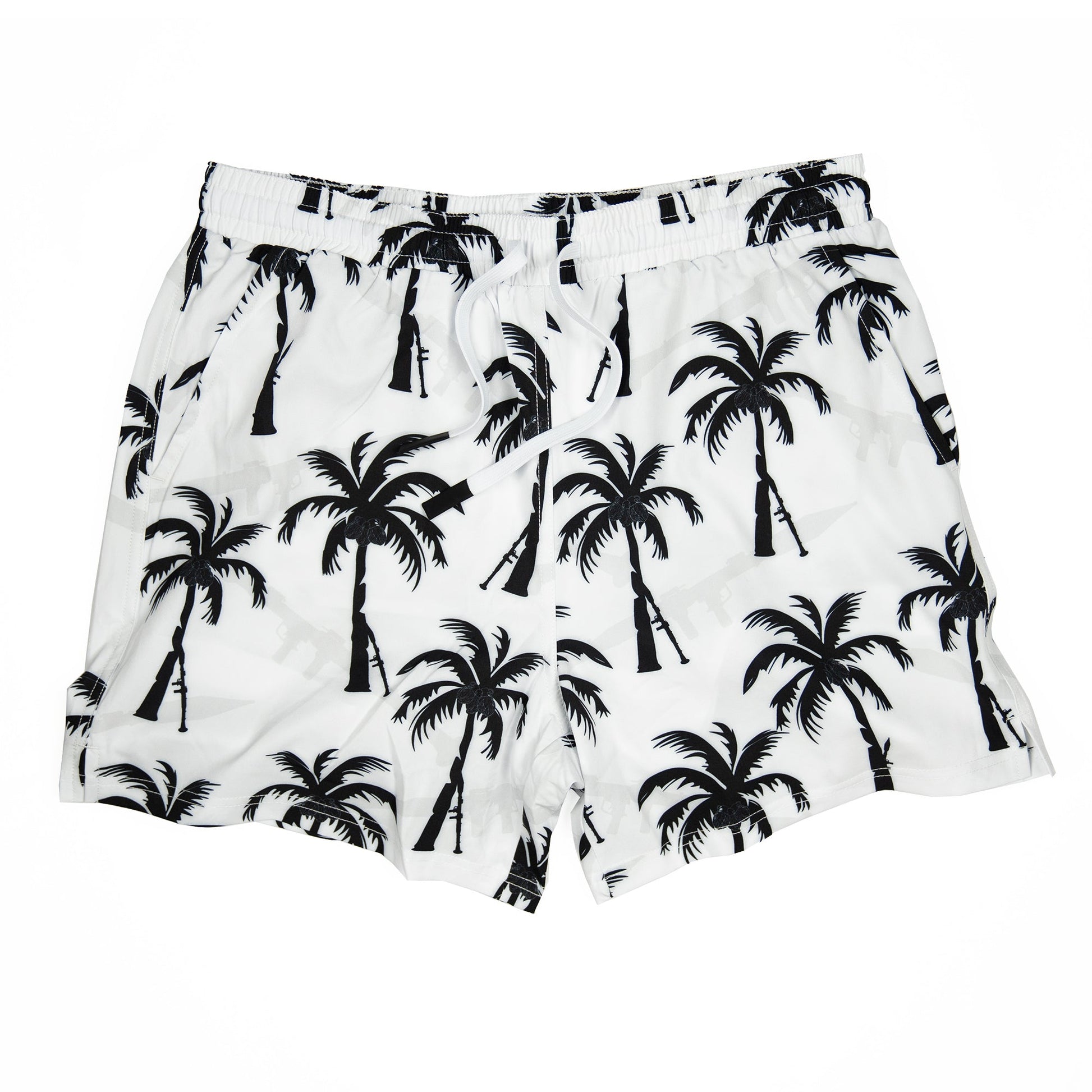 RPGs and Palm Trees swim trunks are made to conquer surf, sand, and whatever you wreck next. Built for pool hangs, range runs, and every blazing-hot mission in between, these boardshorts deliver relentless comfort. Crafted from a lightweight, quick-dry polyester-spandex blend, they feature a comfy fit, 5.5-inch inseam, compression liner, mesh-lined quick-drain pockets, two front and two back pockets, a in-the-waistband pocket perfect for your ID and credit card.
