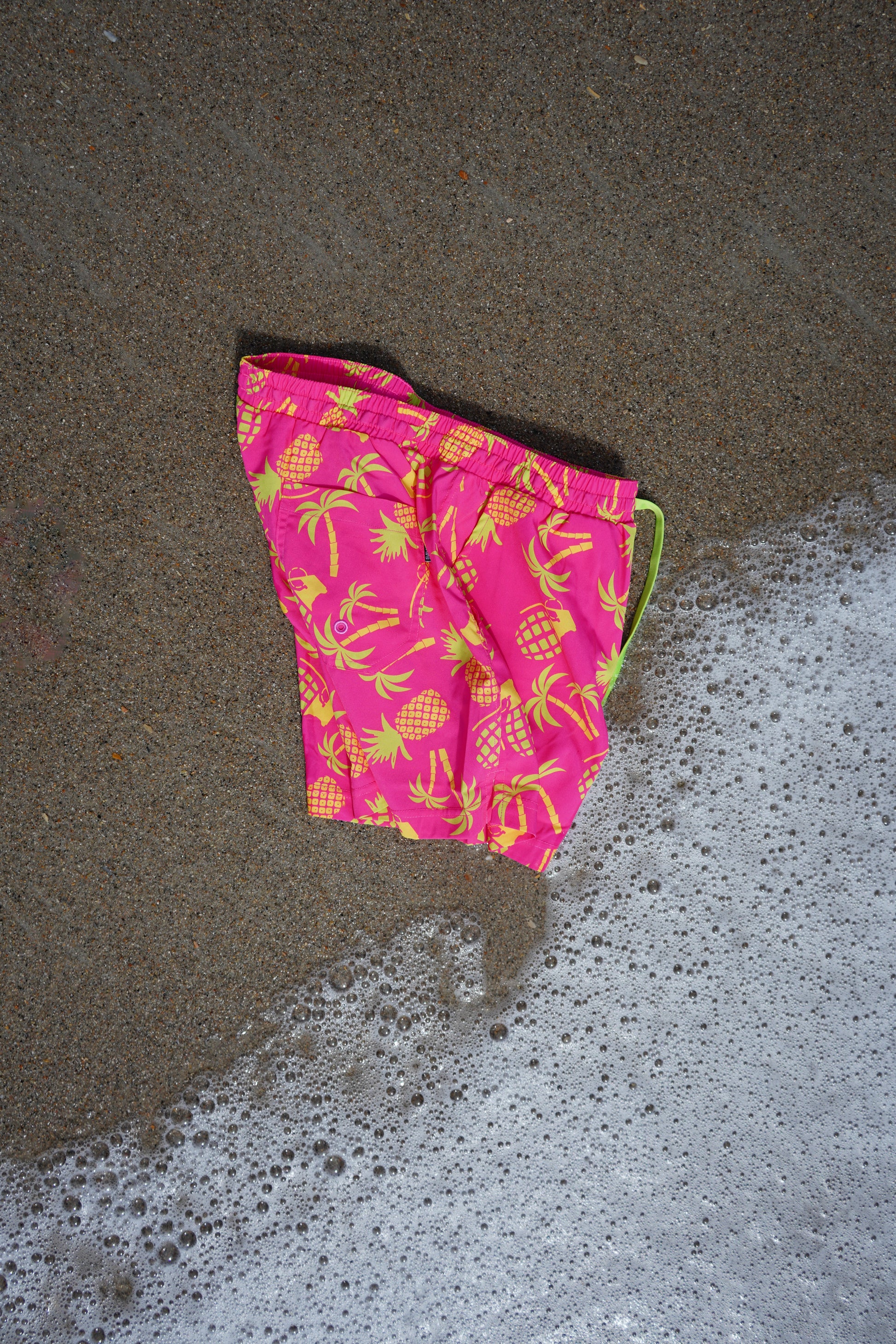 Engineered for those who demand performance and attitude, the Tropic Like its Hot swim trunks feature a durable, lightweight polyester/spandex fabric that dries in a flash. The comfort fit and elastic waistband with a silicone-dipped drawstring lock you in without sacrificing style. With a 5.5-inch inseam and four external pockets plus a stealthy inside waistband stash, they’re as functional as they are fierce. The hot pink tropical munition pattern turns heads and breaks norms—perfect for making waves on your terms.