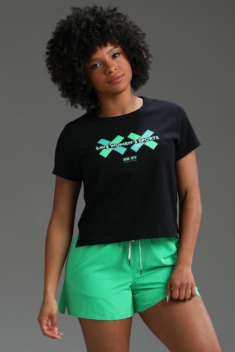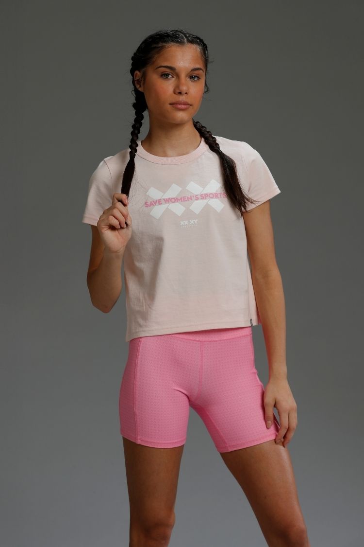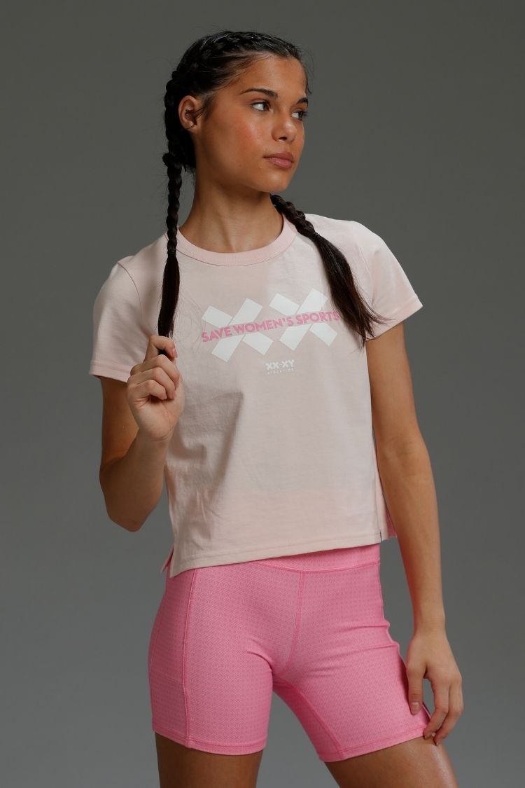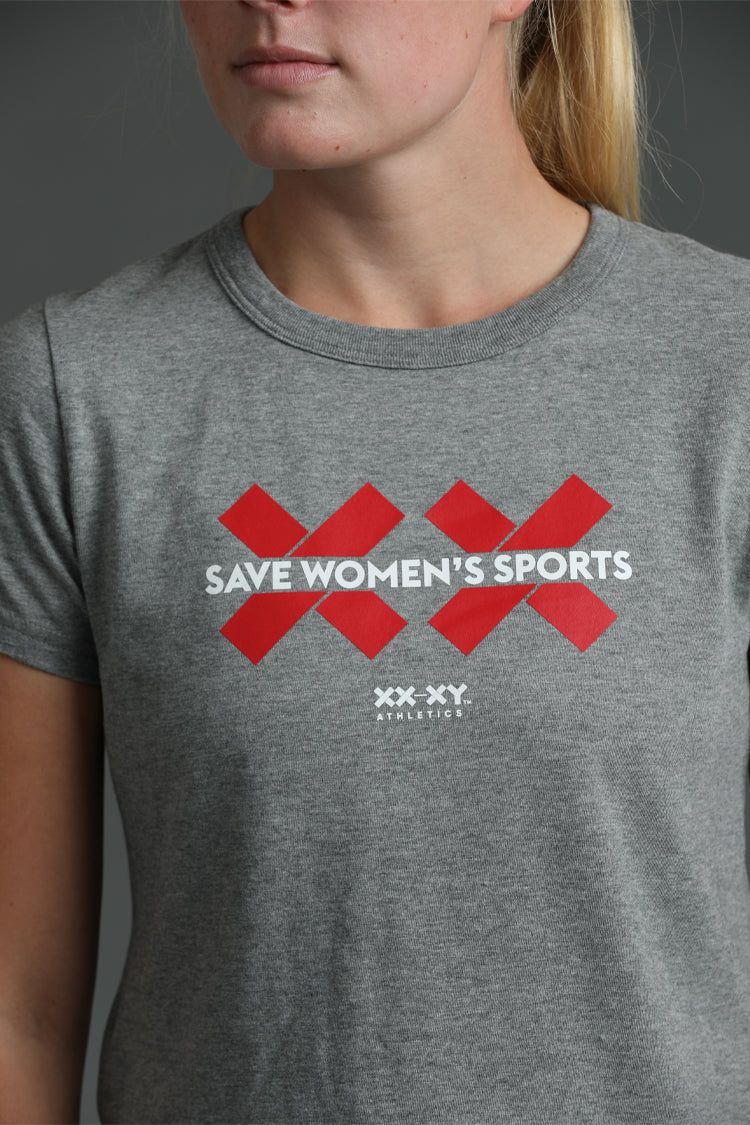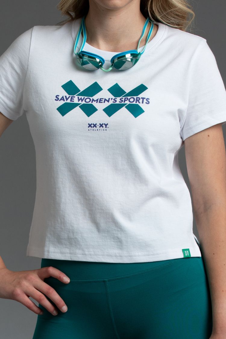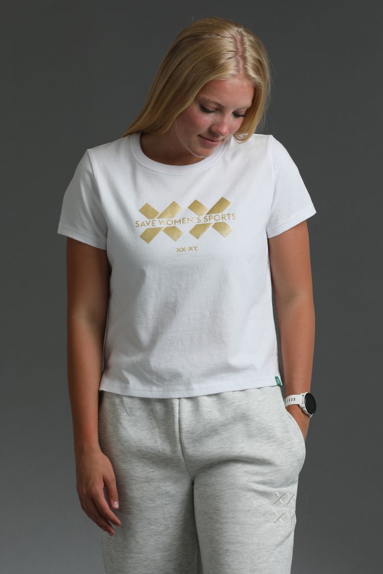 This simple logo tee makes a big statement. It comes in our cropped, slim fit with an irrefutable statement of truth. Women's sports are for XX only.