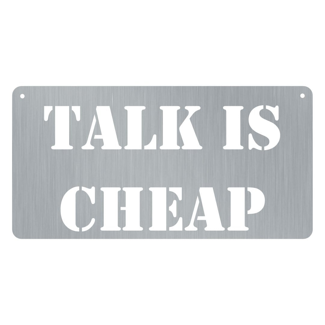 Make a bold statement with the "Talk Is Cheap" plaque, crafted from durable 16 gauge steel and finished with a smooth powder coat. Its rectangular design delivers a straightforward message, adding a confident and meaningful accent to your space.