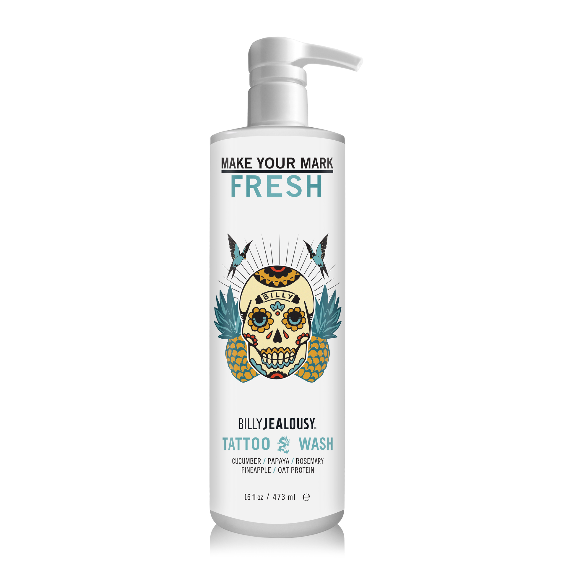 Is your pin-up babe looking a little played out? Formulated with cucumber extract and hydrolyzed oat protein, Billy Jealousy’s Tattoo All Over Wash helps tattoos retain their color and helps skin retain moisture to enhance tattoo vibrancy. Strong enough to revive aging ink, yet gentle enough to assist in healing. A glorious body wash for skin with or without ink!